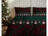 Pościel bawełniana 220x200 z motywem tartanowej tartanowej kraty w ciemnozielonych i bordowych kolorach oraz świątecznych krasnali to doskonały wybór na zimowy sezon, łączący tradycję, najwyższą jakość i wyjątkowy klimat świąt Bożego Narodzenia.