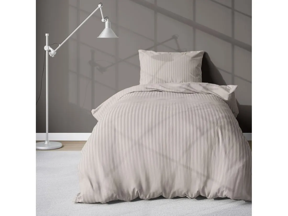 Pościel z adamaszku 140x200 +70x80 Pure beżowa pasek 1 cm adamaszek