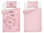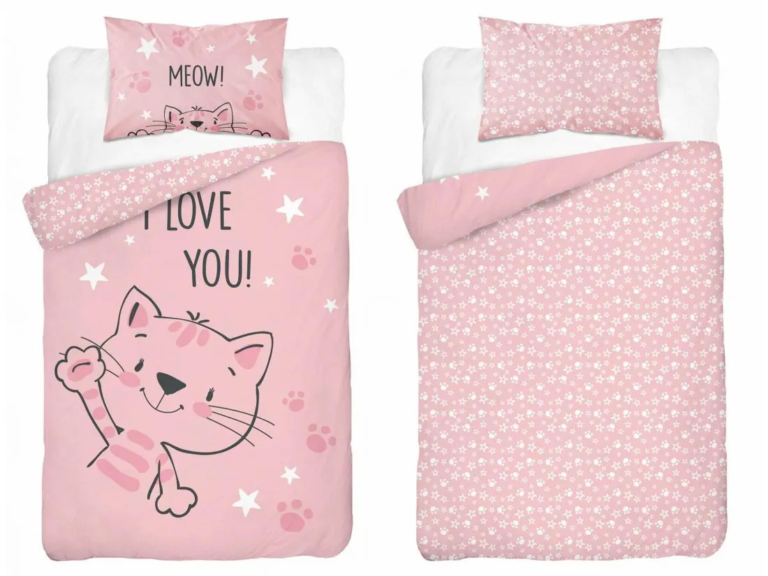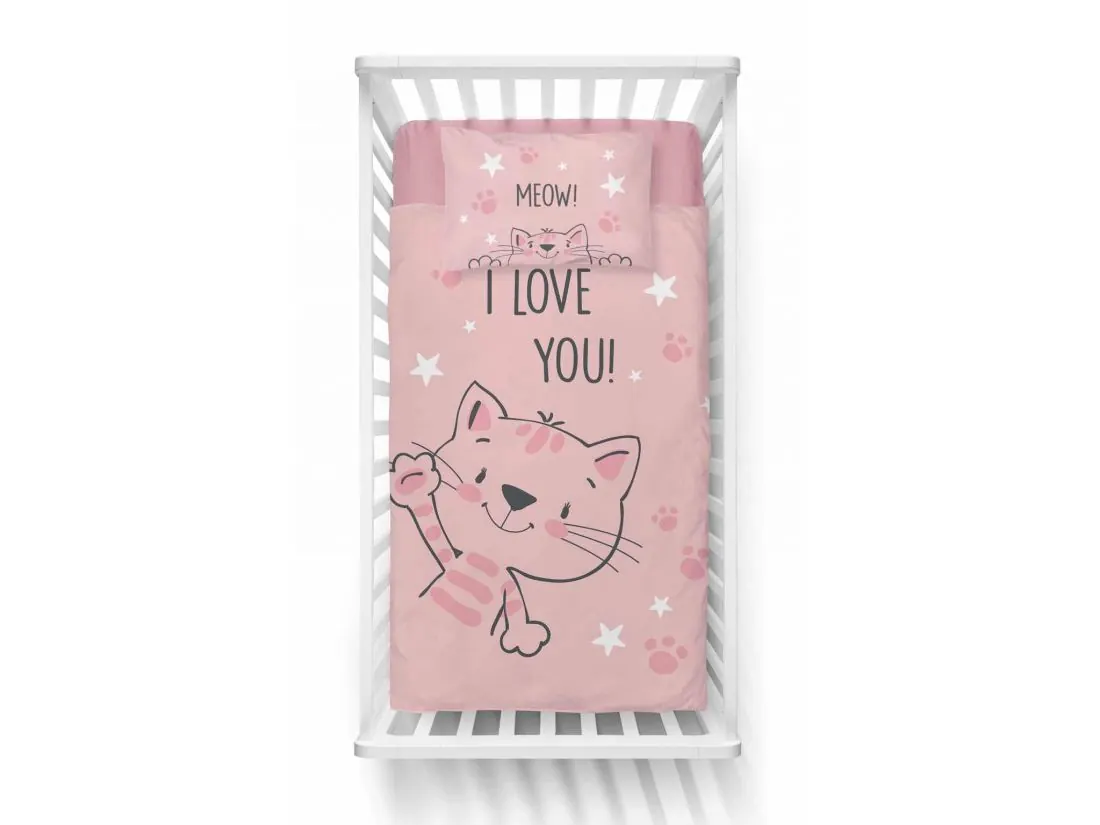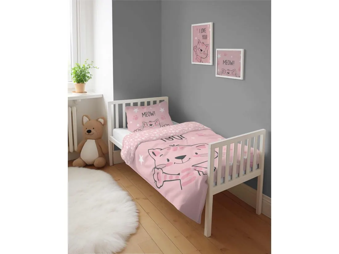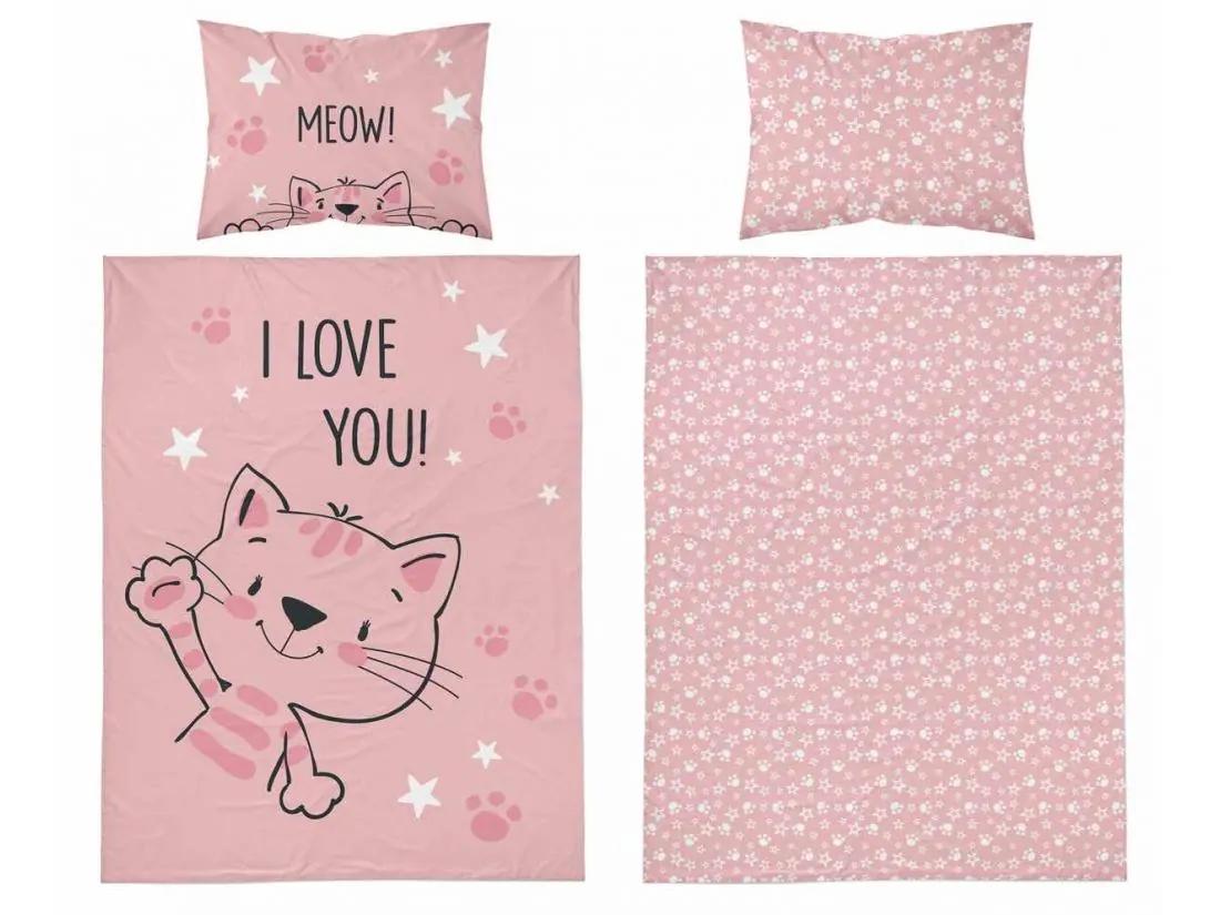 Pościel z bawełny 100x135 + 40x60 kochana kicia dla dzieci do łóżeczka 4992 a różowa