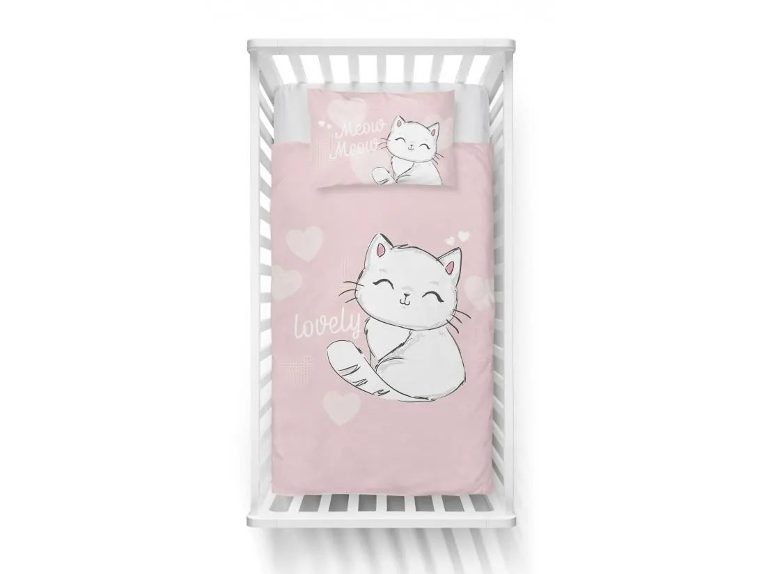 Pościel z bawełny 100x135 + 40x60 kochany kotek dla dzieci do łóżeczka 3158 b biało morelowa