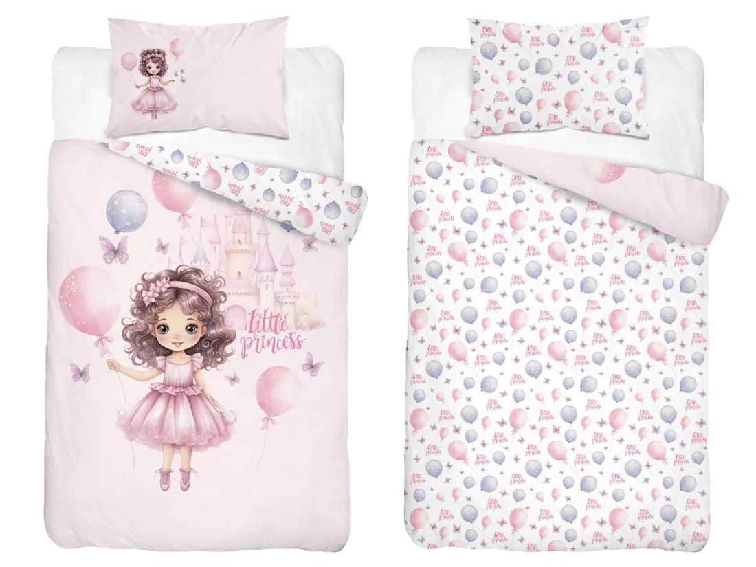 Pościel z bawełny 100x135 + 40x60 księżniczka dla dzieci do łóżeczka 5141 a różowo wrzosowa