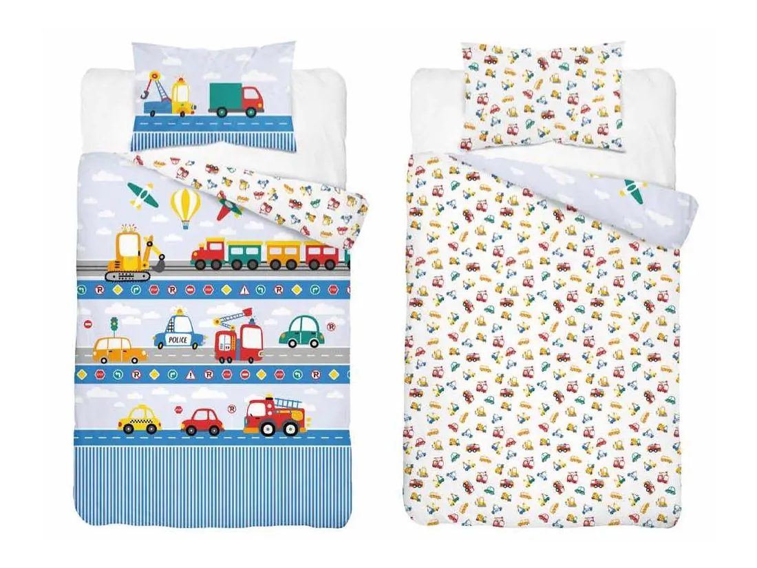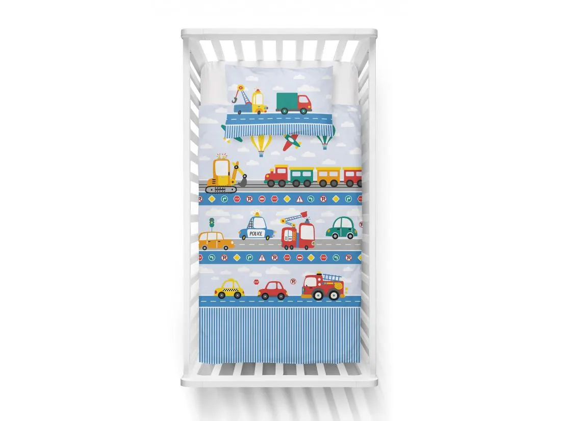 Pościel z bawełny 100x135 + 40x60 niebieska autostrada dla dzieci do łóżeczka 5139 a biało niebieska