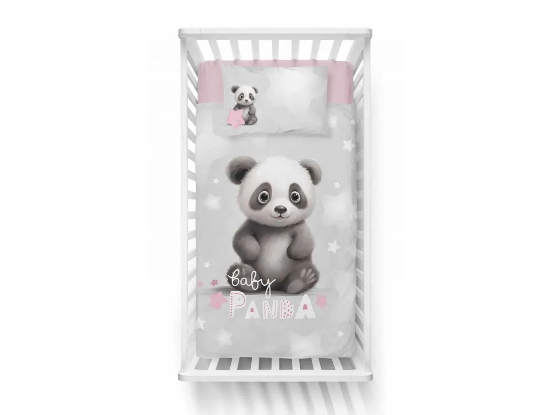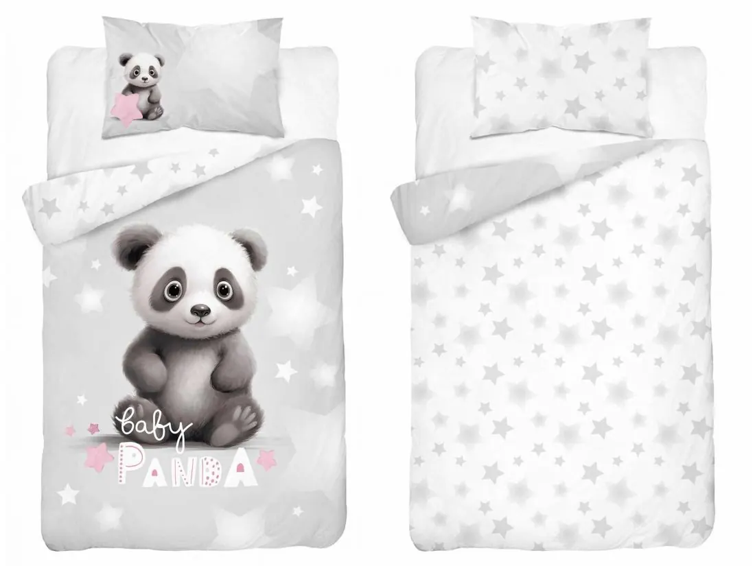 Pościel z bawełny 100x135 + 40x60 panda na szarym tle dla dzieci do łóżeczka 4998 b