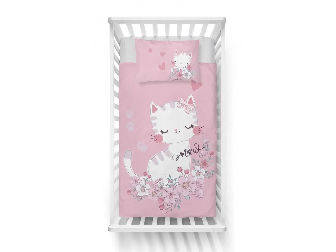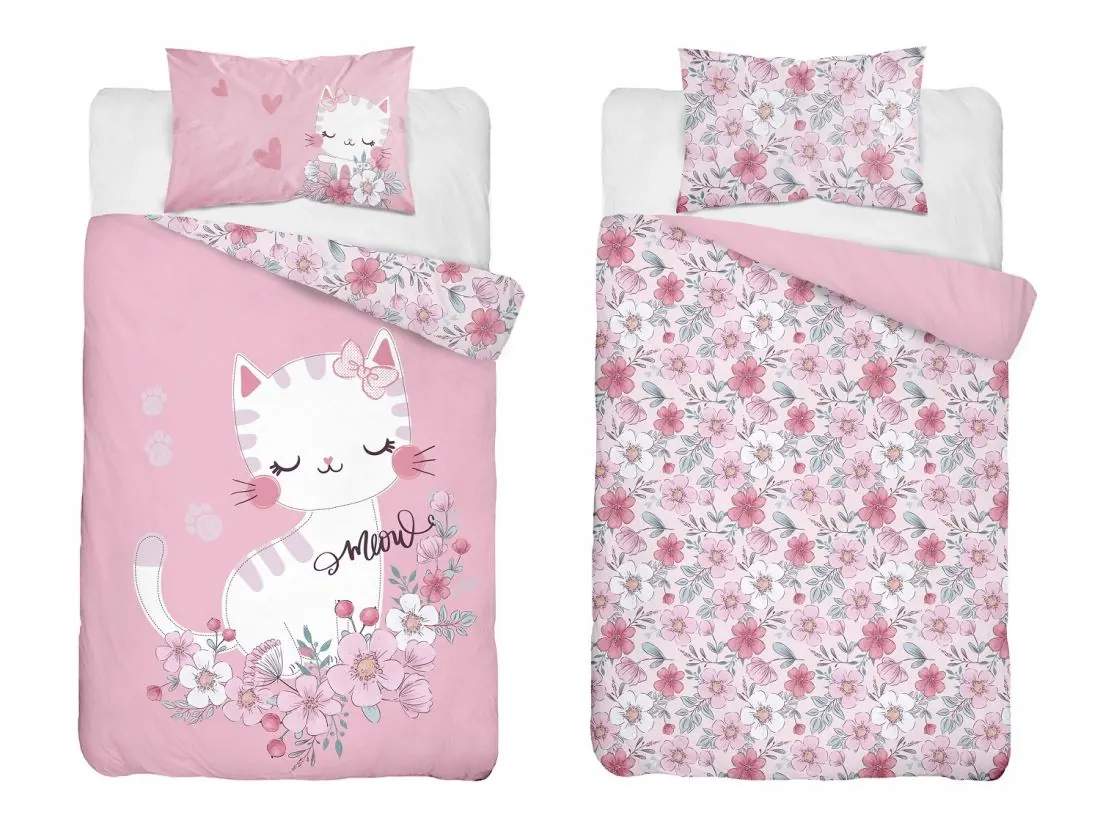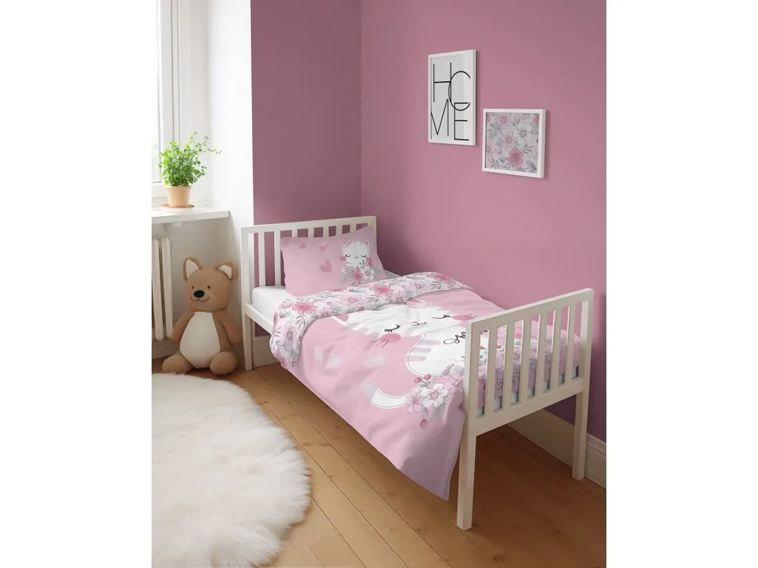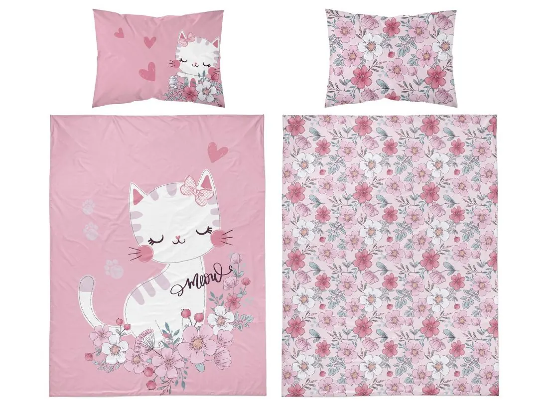 Pościel z bawełny 100x135 + 40x60 różowy kotek do łóżeczka 5136 a