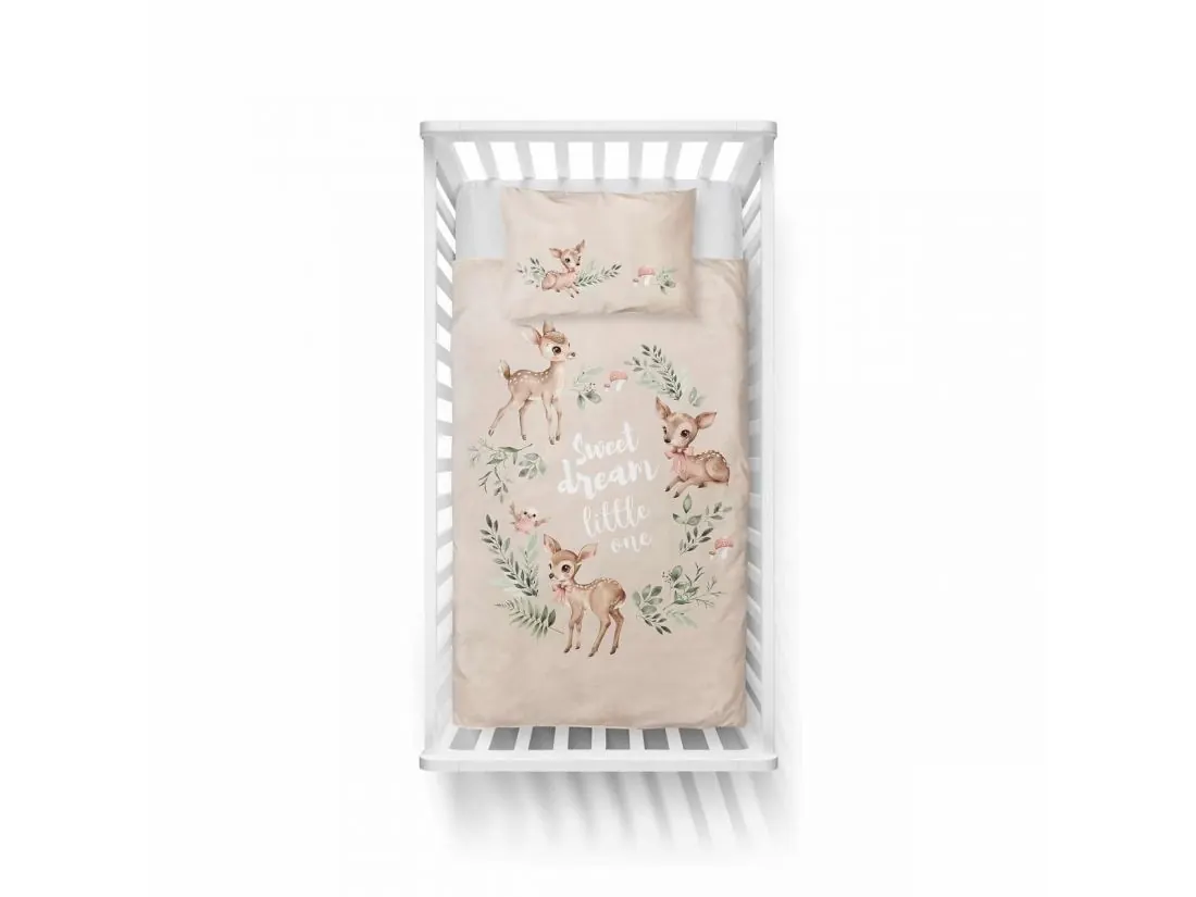 Pościel z bawełny 100x135 + 40x60 sarenka na beżowym tle dla dzieci do łóżeczka 5511 a
