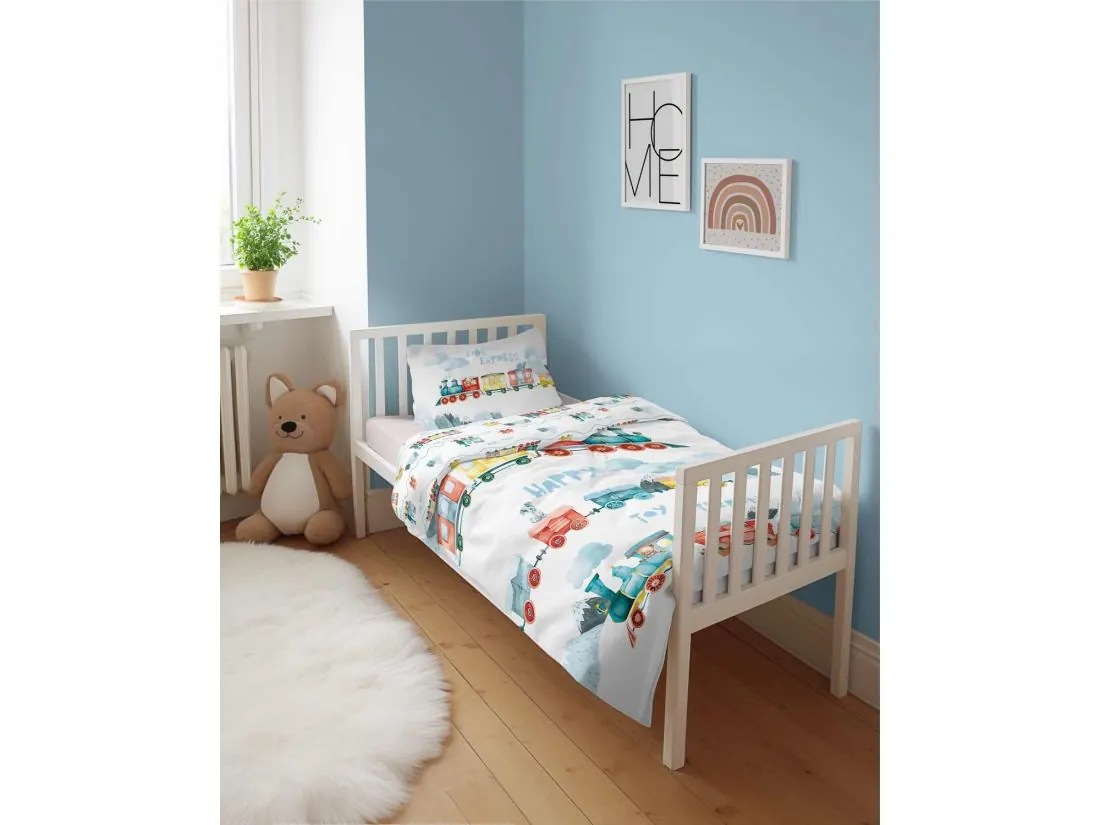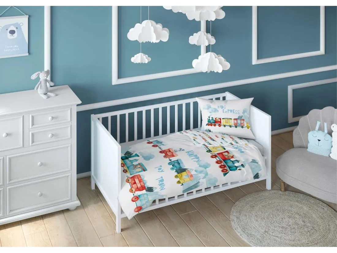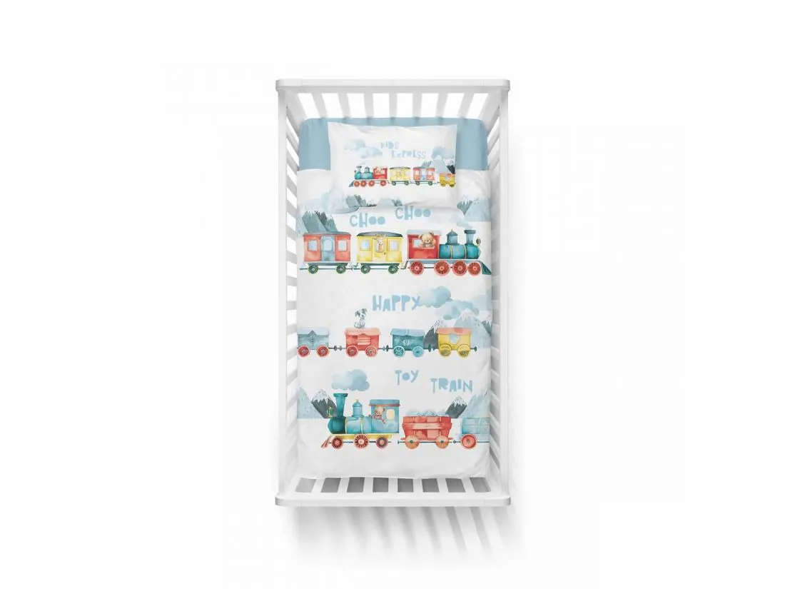 Pościel z bawełny 100x135 + 40x60 turkusowa kolejka dla dzieci do łóżeczka 5507 b