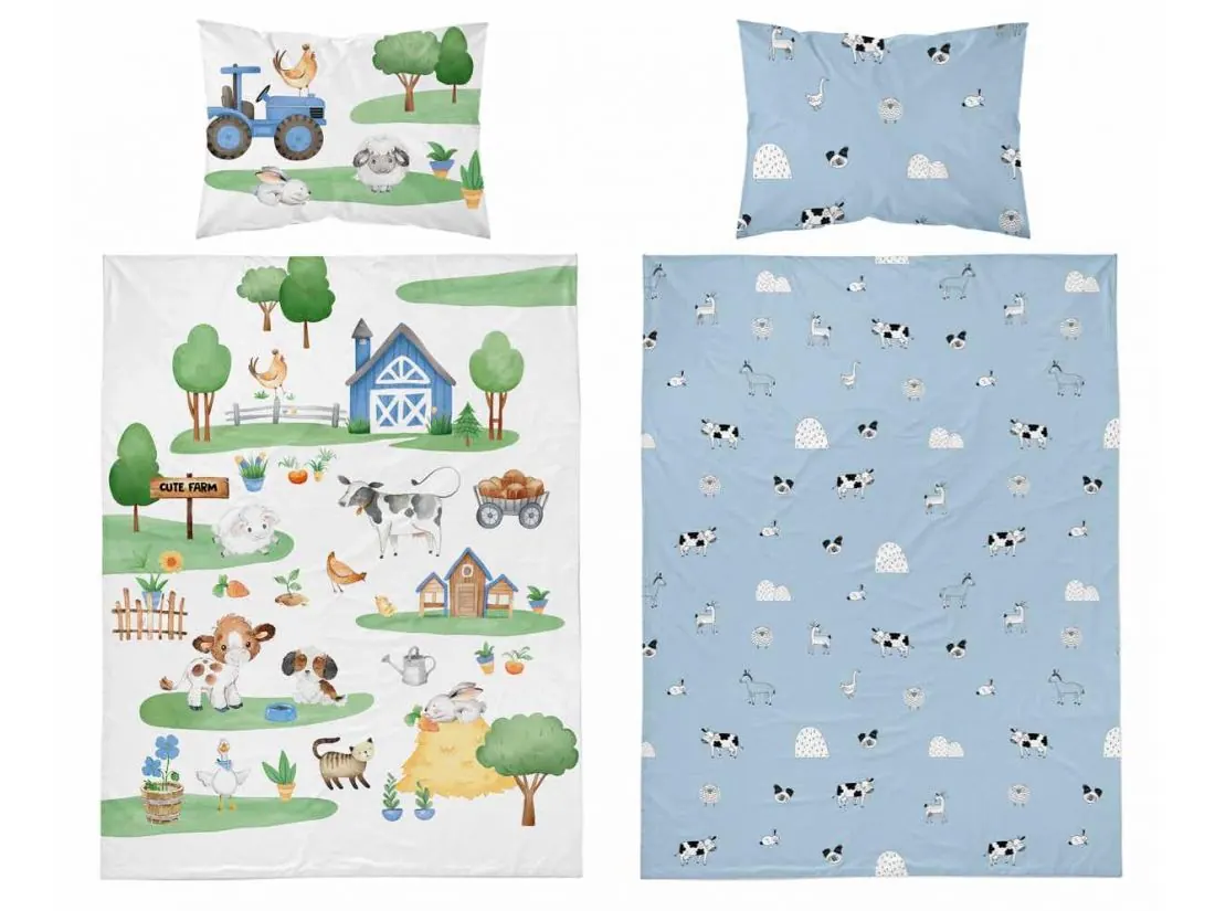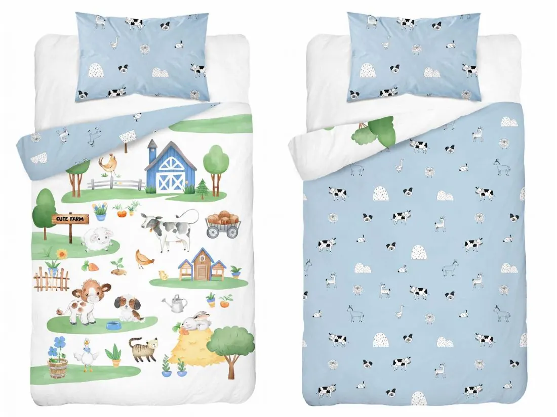 Pościel z bawełny 100x135 + 40x60 wesoła zagroda dla dzieci do łóżeczka 4999 b niebieska