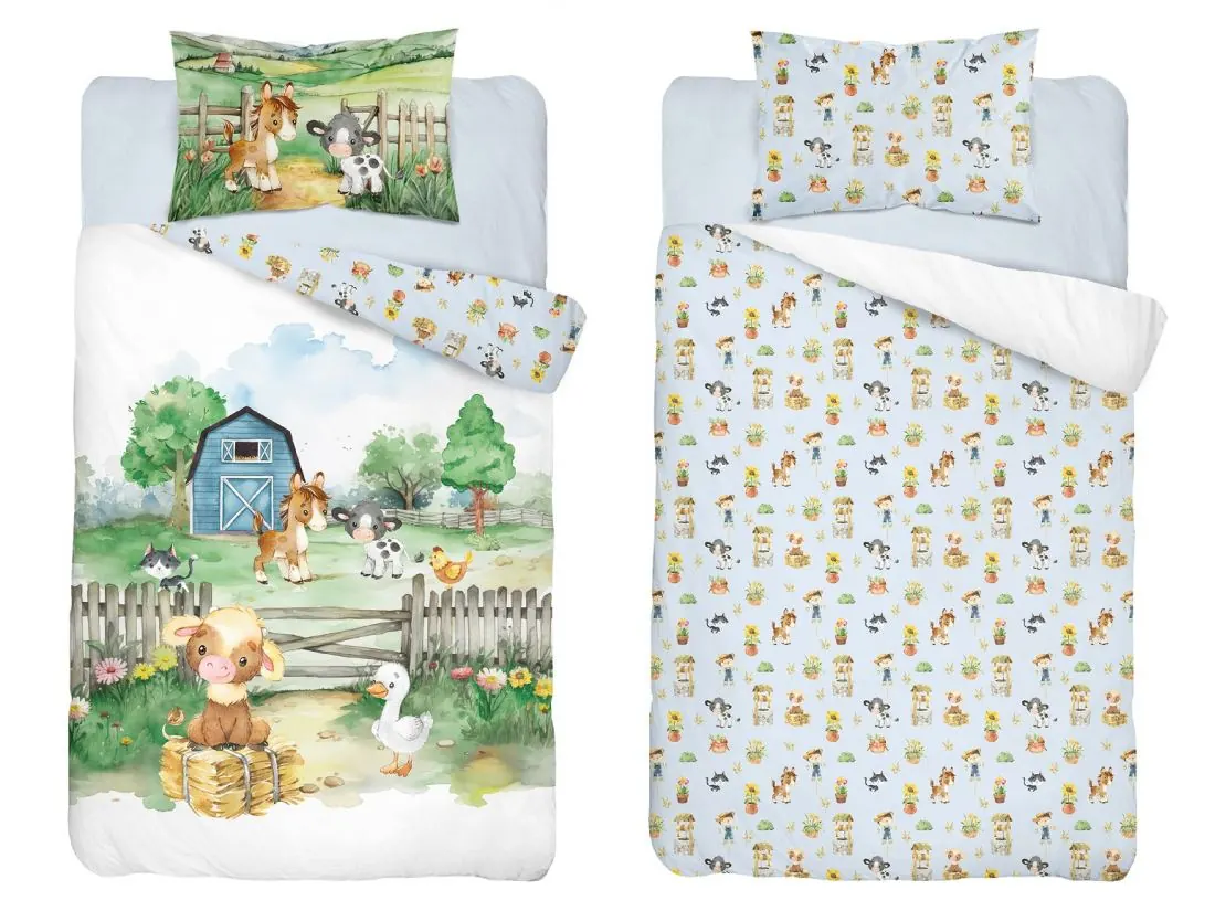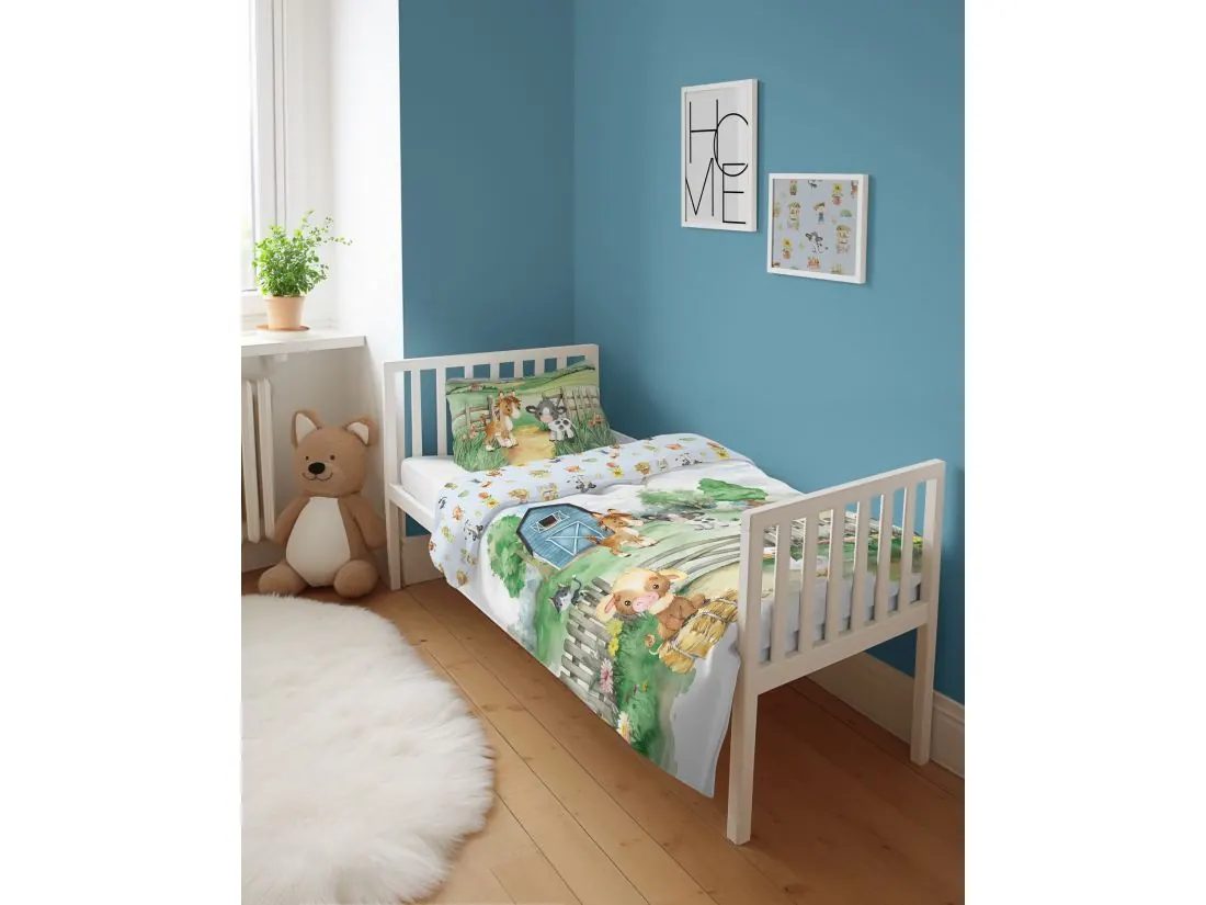 Wesoła pościel dziecięcą do łóżeczka w rozmiarze 100x135 cm z poszewką na poduszkę 40x60 cm, wykonaną z najwyższej jakości bawełny o gramaturze 120 g/m². Delikatna, przewiewna i hipoalergiczna tkanina zapewnia komfortowy i spokojny sen, jednocześnie dbając o bezpieczeństwo wrażliwej skóry dziecka. Dzięki swojej trwałości pościel świetnie sprawdza się w codziennym użytkowaniu.