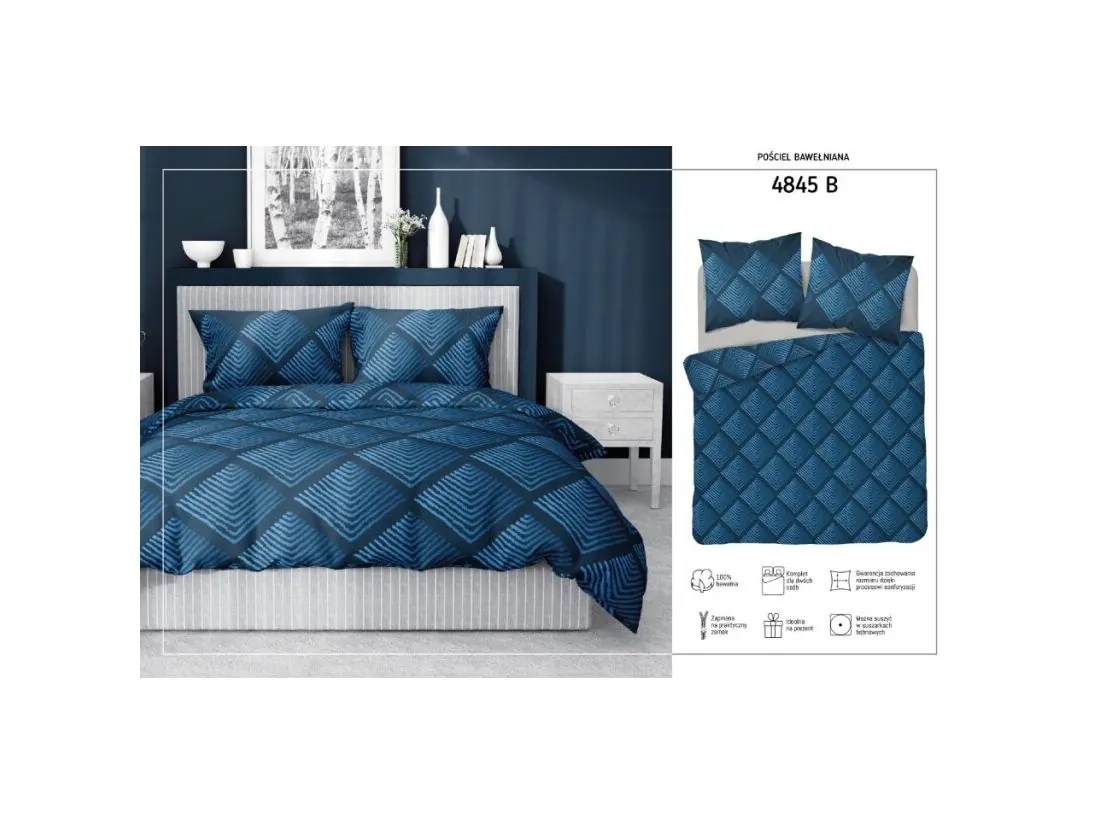 Pościel z bawełny 140x200 +1/70x80 granatowe romby wz.4845 b detexpol