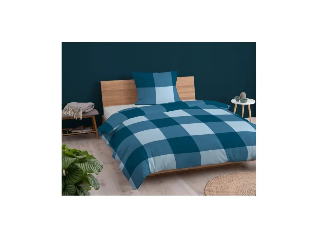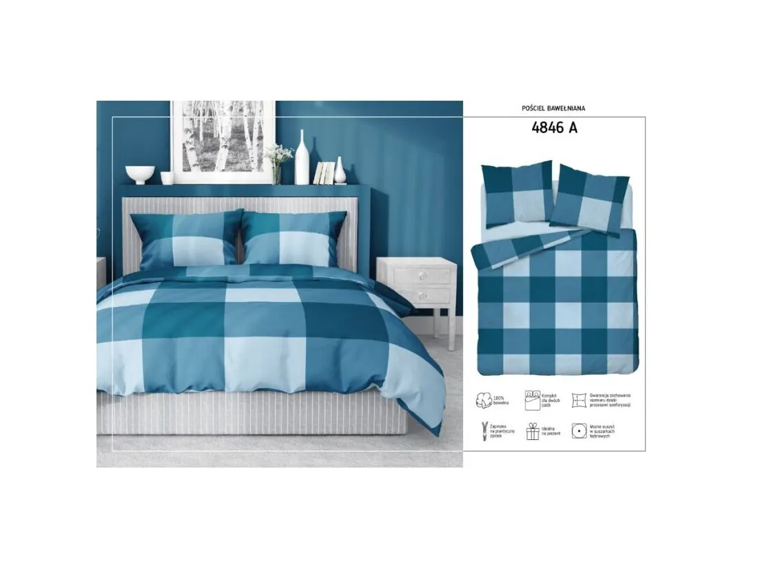 Pościel z bawełny 140x200 +1/70x80 kratka turkusowa wz.4846 a detexpol