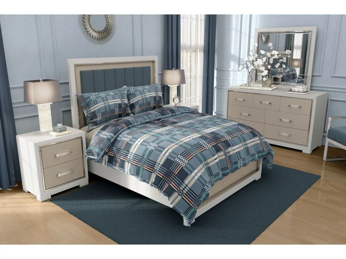 Pościel z bawełny 140x200 +1/70x80 Madras niebieska krata Gold Collection