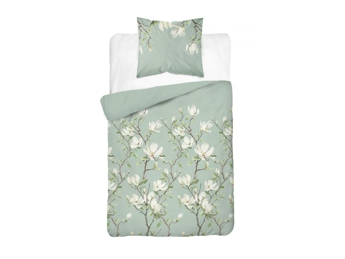 Pościel z bawełny 140x200 +1/70x80 magnolie na miętowym tle wz. 5497 a