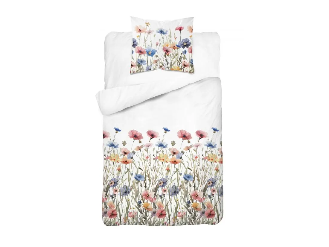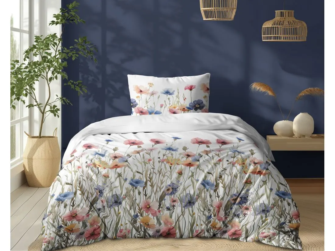 Pościel z bawełny 140x200 +1/70x80 maki, bławatki wz. 5341 a