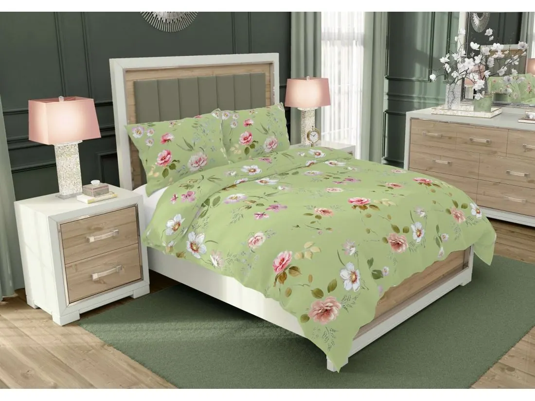 Pościel z bawełny 140x200 +1/70x80 Olivia kwiatki na zielonym tle Gold Collection