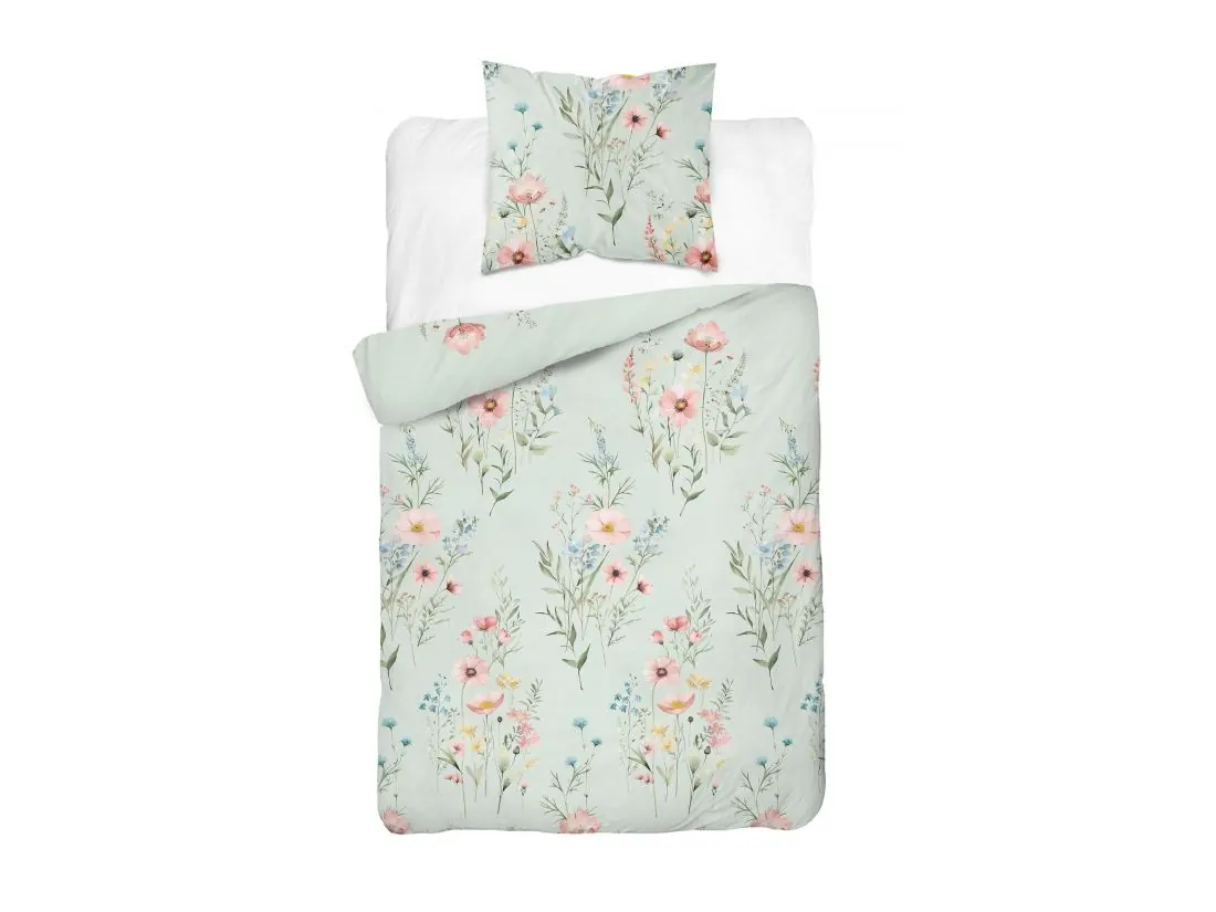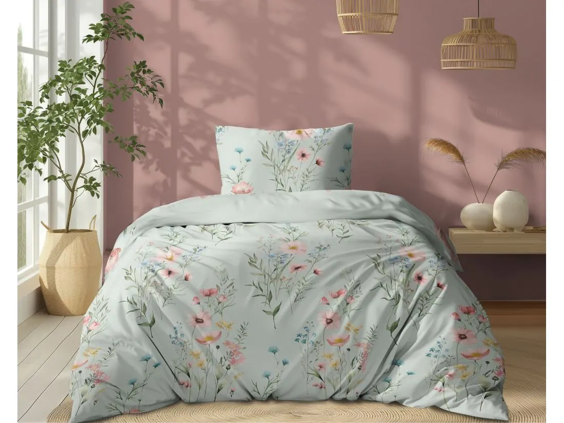 Pościel z bawełny 140x200 +1/70x80 pastelowa łąka na miętowym tle wz. 5499 b