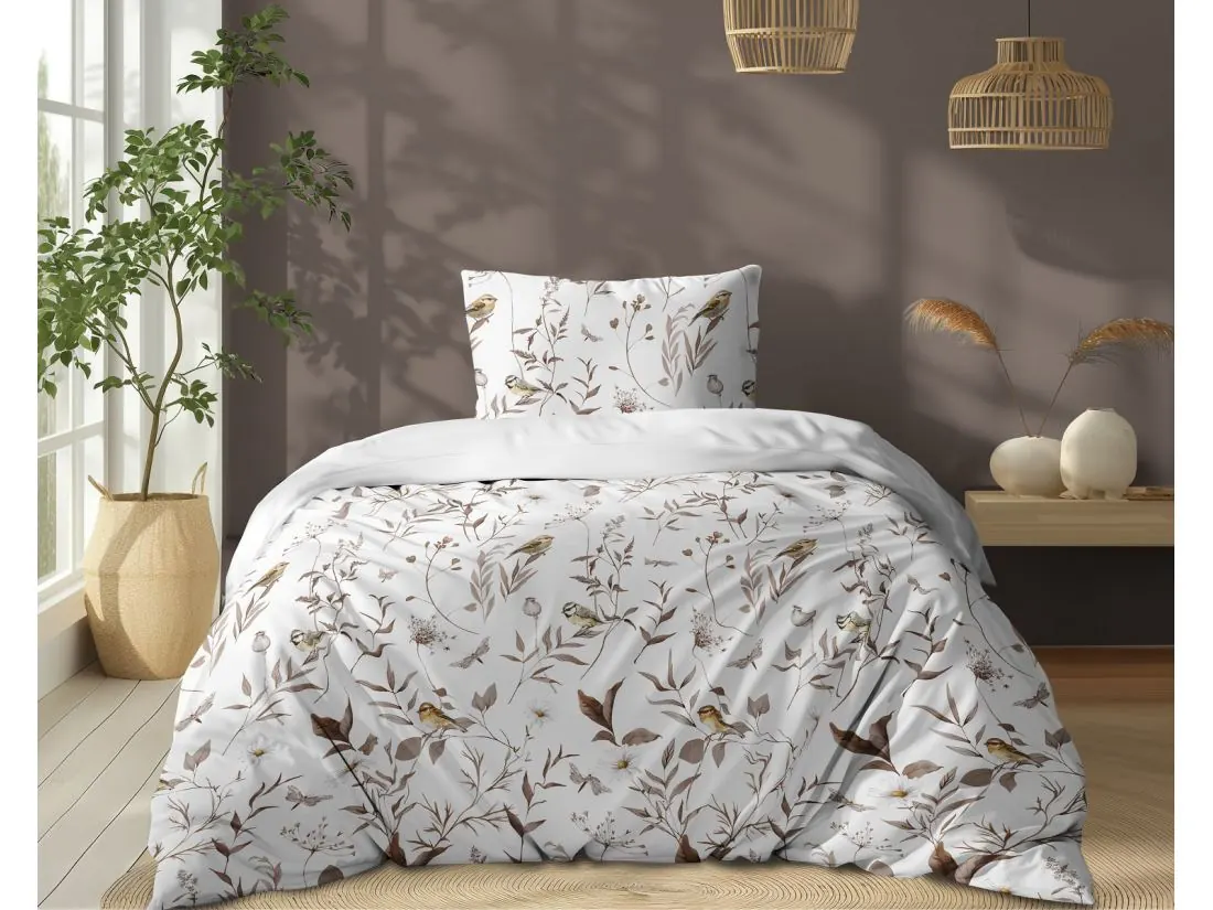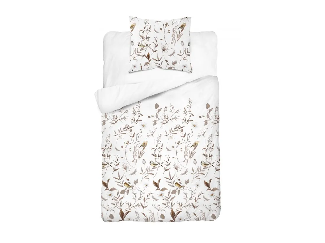 Pościel z bawełny 140x200 +1/70x80 poranny śpiew biało beżowa wz. 5500 b