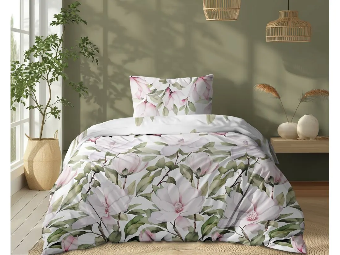 Pościel z bawełny 140x200 +1/70x80 różowy dotyk magnoli wz. 5505 a