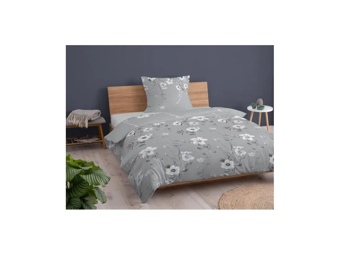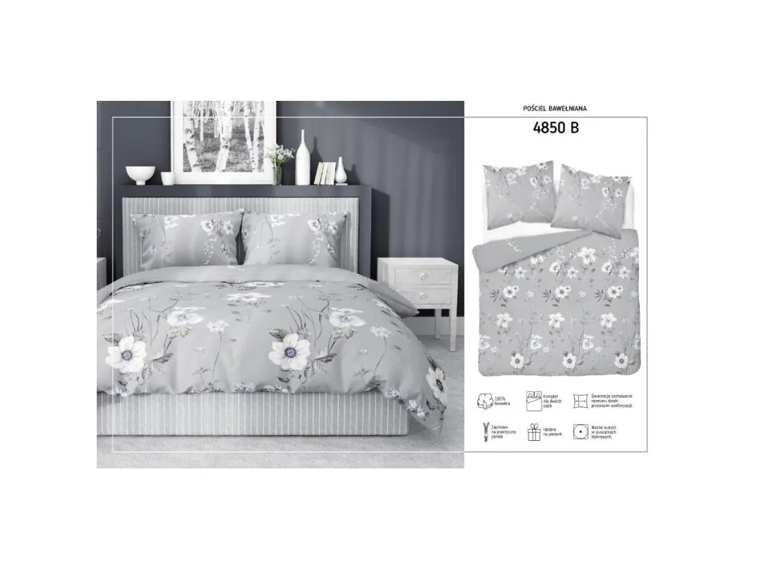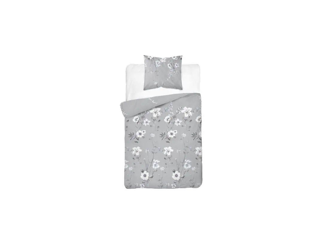 Pościel z bawełny 140x200 +1/70x80 szara łączka wz.4850 b detexpol