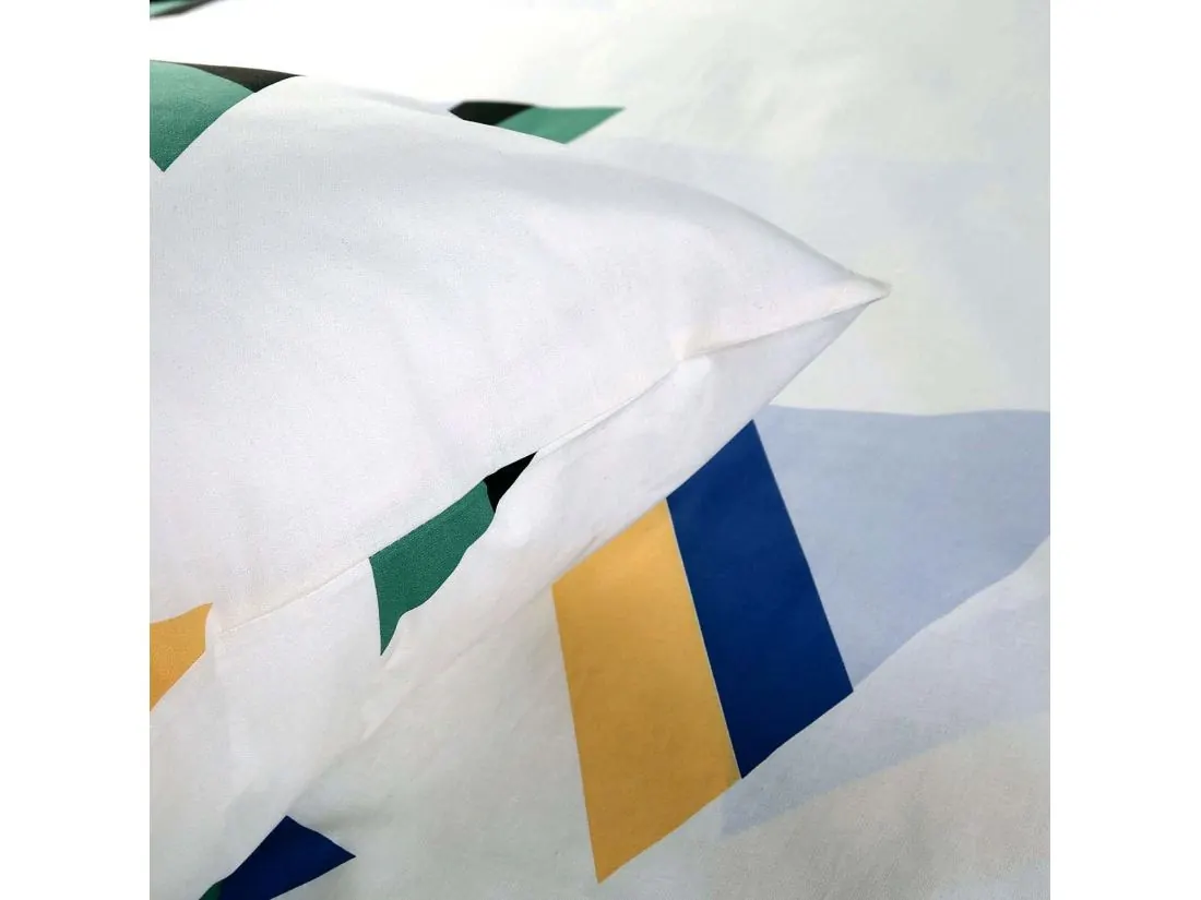 Wzór na tej pościeli bawełnianej to dynamiczna i nowoczesna interpretacja geometrii, która wnosi do sypialni energię oraz powiew świeżości. Na czysto białym tle rozsypano barwną mozaikę nachodzących na siebie trójkątów, tworząc kompozycję pełną ruchu i współczesnego stylu. To propozycja z kolekcji Cottonlove, stworzona dla osób, które chcą ożywić swoje wnętrze tęczą kształtów, korzystając z najwyższej jakości naturalnych tkanin.