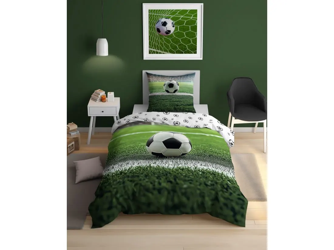 Wykonana z najwyższej jakości 100% bawełny, pościel jest miękka, przewiewna i przyjemna w dotyku. Dzięki gęstemu splotowi i starannemu wykończeniu tkanina doskonale sprawdza się nawet przy wrażliwej skórze dziecka, zapewniając komfort przez całą noc. Proces sanforyzacji chroni materiał przed kurczeniem się i zniekształceniem po praniu. Intensywne kolory – zieleń murawy i czarno-biała piłka – pozostają żywe i wyraziste nawet po wielu praniach. Wszystkie elementy pościeli zapinane są na atestowany, bezpieczny dla dzieci zamek.