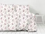Komplet pościeli z bawełny dla dzieci wzór Sky w rozmiarze 140 x 200 cm + 1 poszewka 70 x 80 cm został wykonany ze 100 % bawełny o delikatnym, a jednocześnie trwałym splocie, nadającym tkaninie wyjątkową miękkość i gładkość, zwiększającą komfort użytkowania i ułatwiającą prasowanie. Pościel bawełniana z wesołym zajączkiem to propozycja dla każdego małego miłośnika tych zwierzątek, stonowana kolorystyka pościeli oraz sama słodycz bijąca od słodkich maluszków sprawi, że każde dziecko słodko zaśnie razem ze swoimi pupilem oraz pomoże utulić każdego maluszka do snu.