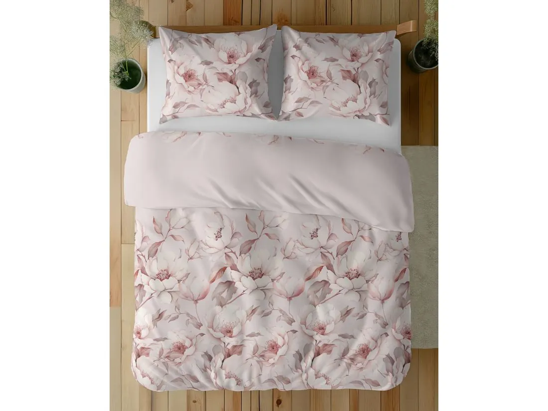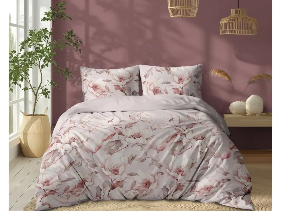 Pościel z bawełny 160x200 +2/70x80 kwiatowa cisza biało różowa wz. 5501 b