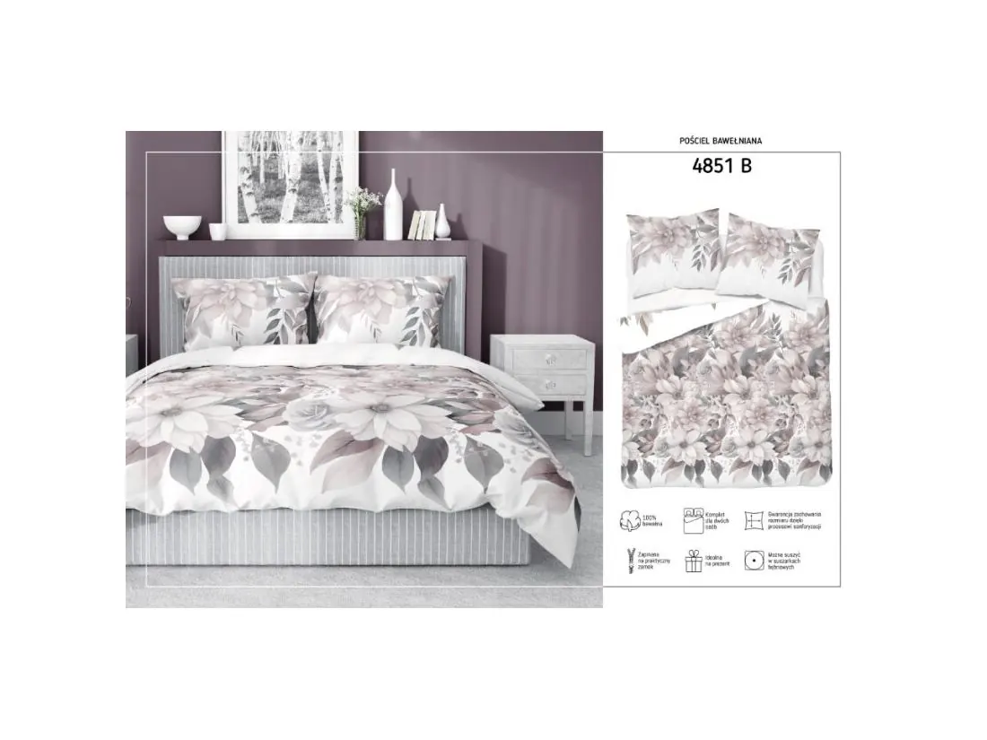 Pościel z bawełny 160x200 +2/70x80 kwiaty wrzosowe wz.4851 b detexpol