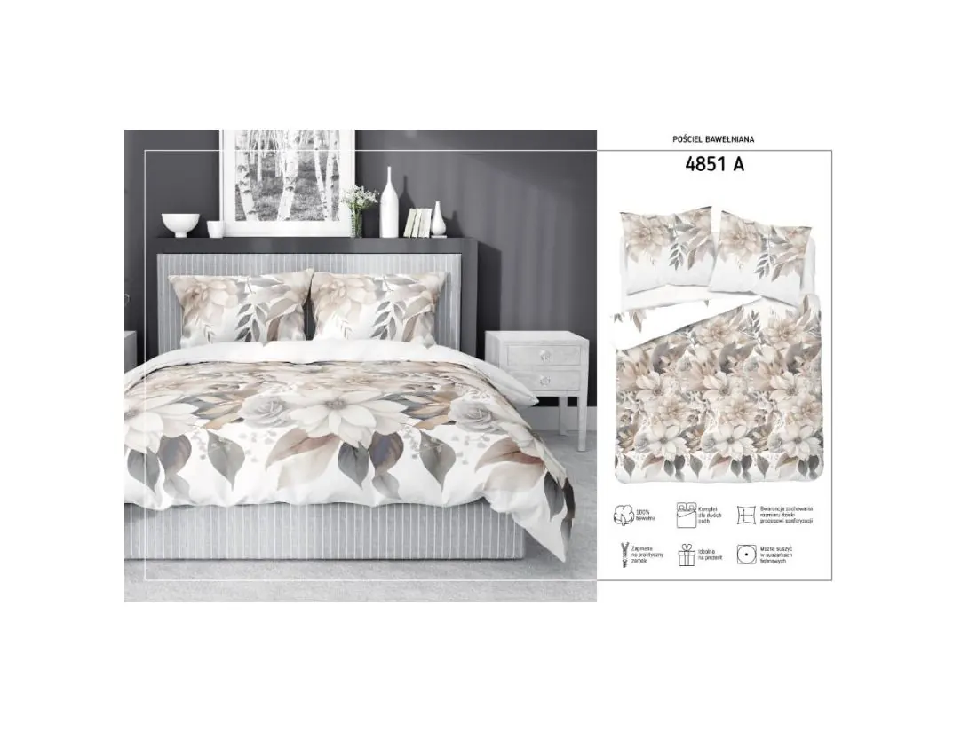 Pościel z bawełny 160x200 +2/70x80 kwiaty wz.4851 a detexpol