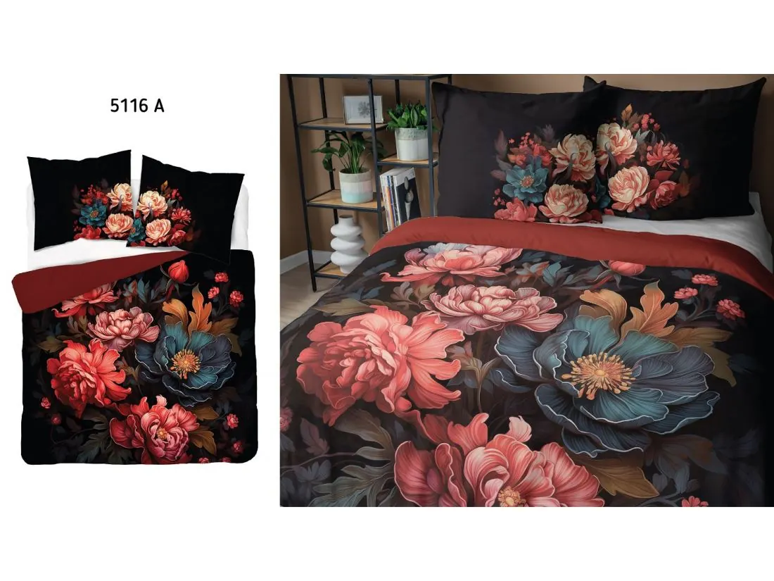 Pościel z bawełny 160x200 +2/70x80 morelowe piwonie holland collection holenderska 3D 5116 A