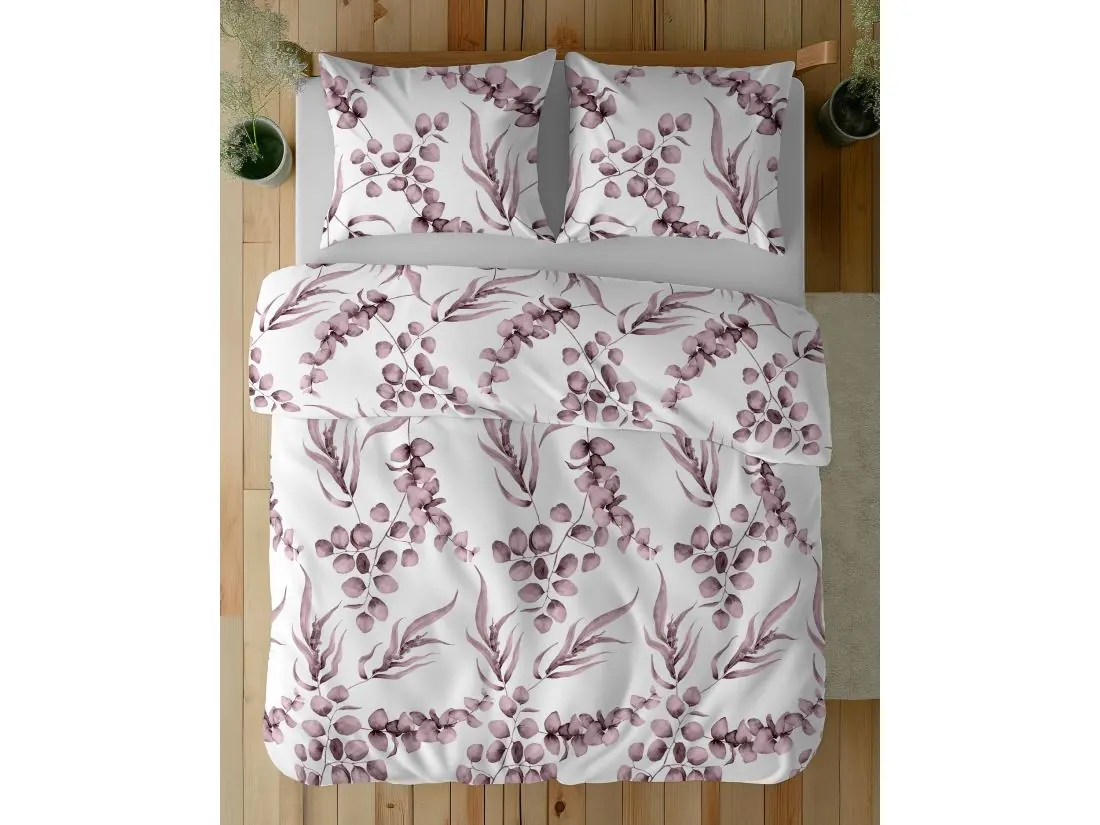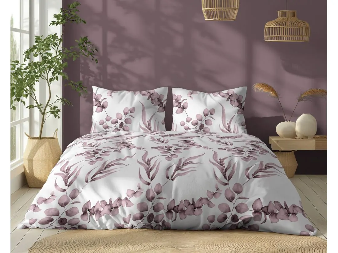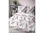 Pościel z bawełny 160x200 +2/70x80 pudrowe listki na białym tle wz. 5107 b