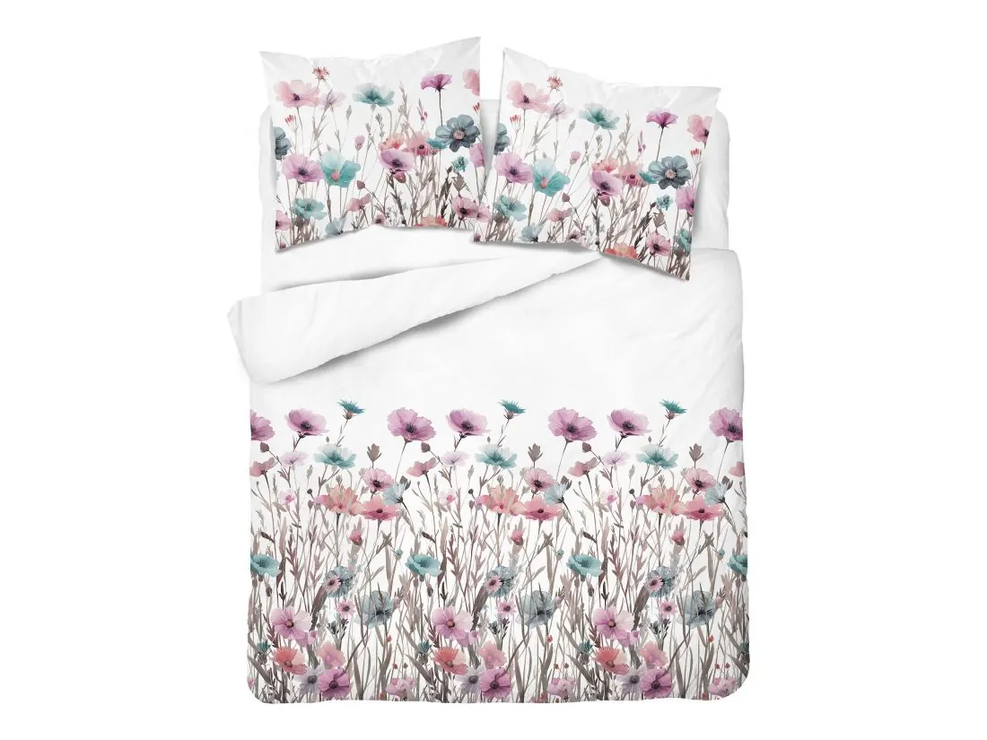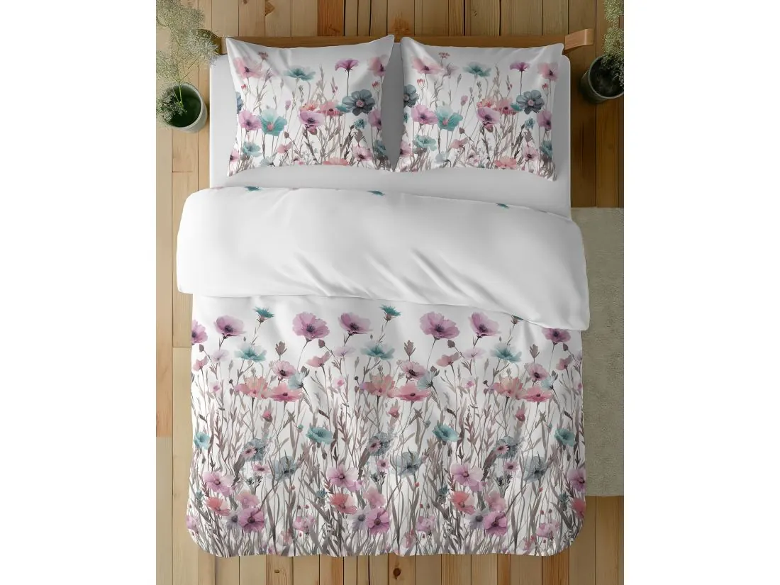 Pościel z bawełny 160x200 +2/70x80 turkusowe, różowe maki wz. 5341 b