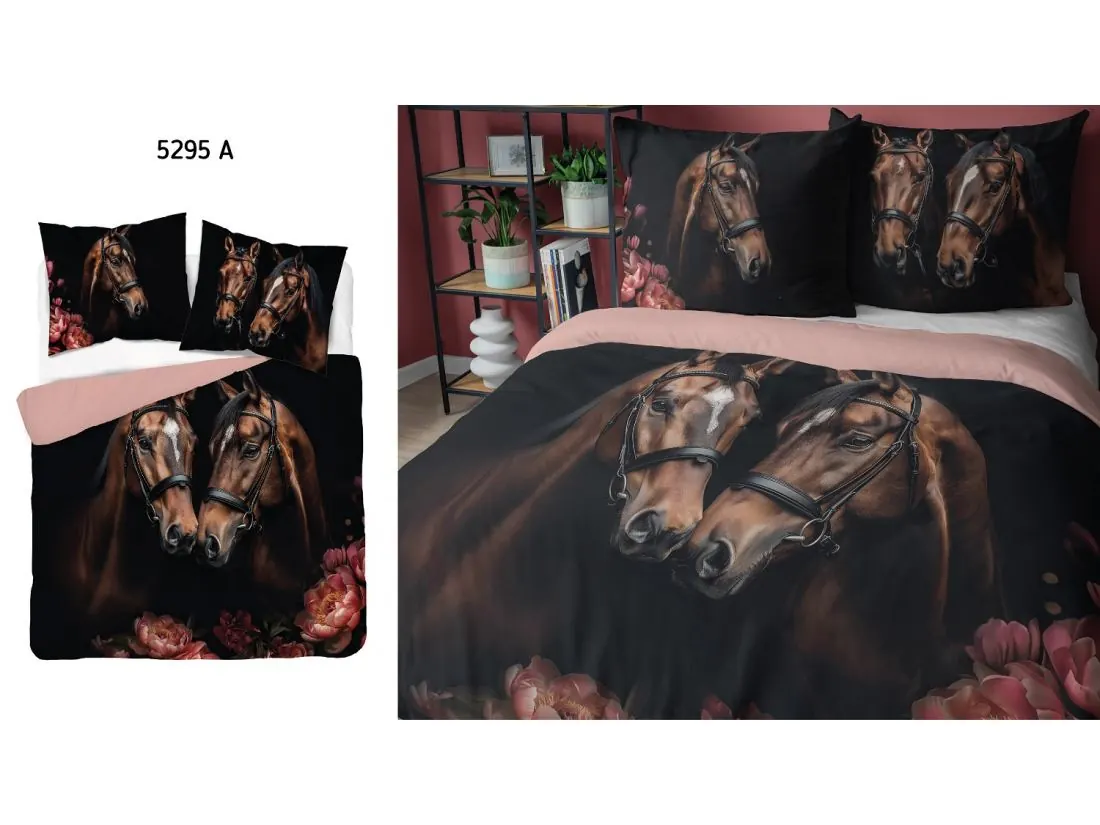 Pościel z bawełny 160x200 +2/70x80 wz. 5295 A konie holland nature holenderska 3D