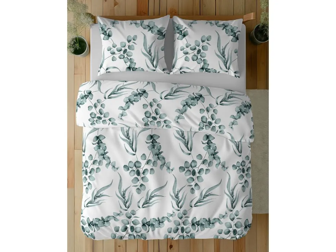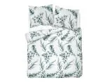 Pościel z bawełny 160x200 +2/70x80 zielone listki na białym tle wz. 5107 a