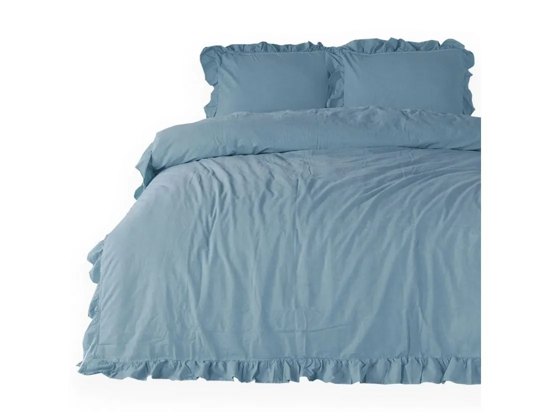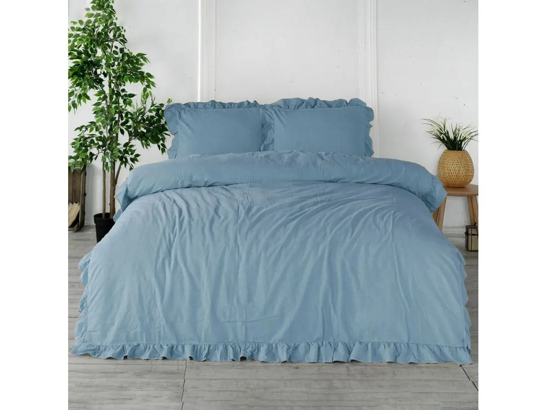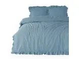 Pościel z bawełny 160x200 z falbanką blue Limasso w pudełku bez prasowania niebieski