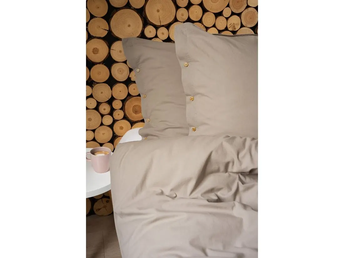 Pościel z Bawełny 160x200 z Ozdobnymi Guzikami - Bez Prasowania Taupe