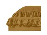 Poszwa na kołdrę została ozdobiona dekoracyjną falbanką, która dodaje elegancji i subtelności. Zapinana na guziki, pościel utrzymuje kołdrę na miejscu, zapewniając wygodę i bezpieczeństwo podczas snu. Poszewka na poduszkę posiada falbankę na czterech stronach, co nadaje jej delikatny i romantyczny wygląd. Poszewka zapinana jest na zakładkę, co sprawia, że wkładka pozostaje na miejscu i nie przesuwa się podczas snu.