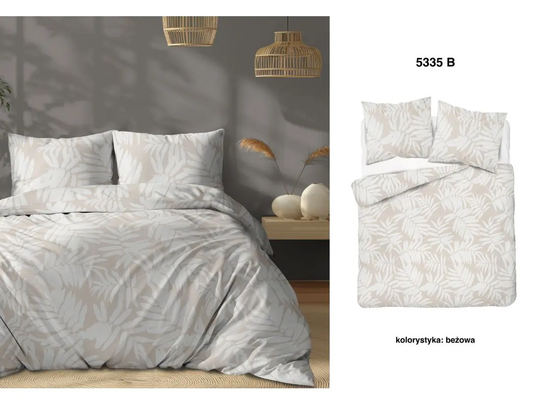 Pościel z bawełny 180x200 +2/70x80 listki na beżowym tle wz.5335 b
