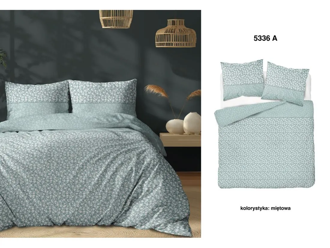 Pościel z bawełny 180x200 +2/70x80 miętowe kwiatuszki wz.5336 a