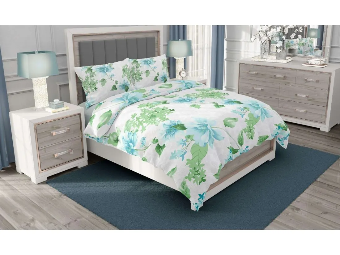 Pościel z bawełny 220x200 +2/70x80 Amelia kwiatki na białym tle Gold Collection