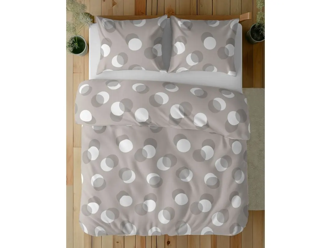 Pościel z bawełny 220x200 +2/70x80 beżowe kółka wz. 5495 a