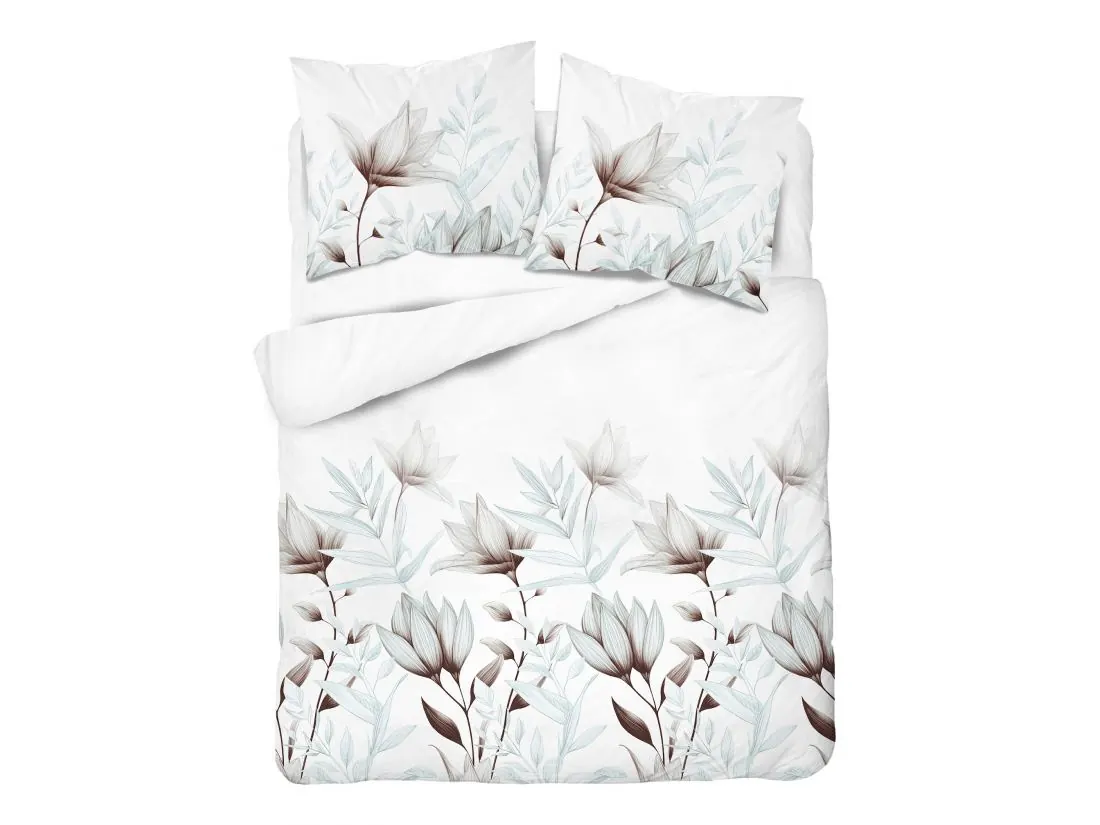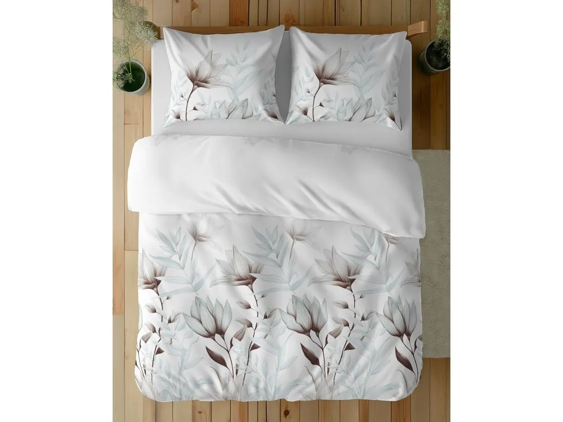 Pościel z bawełny 220x200 +2/70x80 beżowo zielone kwiaty wz. 5494 b