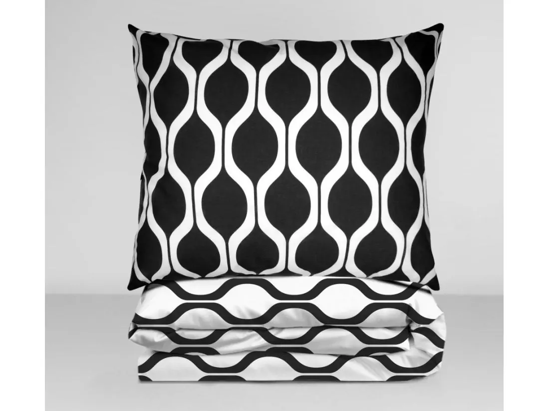 Pościel z bawełny 220x200 +2/70x80 Imo Bielbaw Premium biało czarny wzór geometryczny