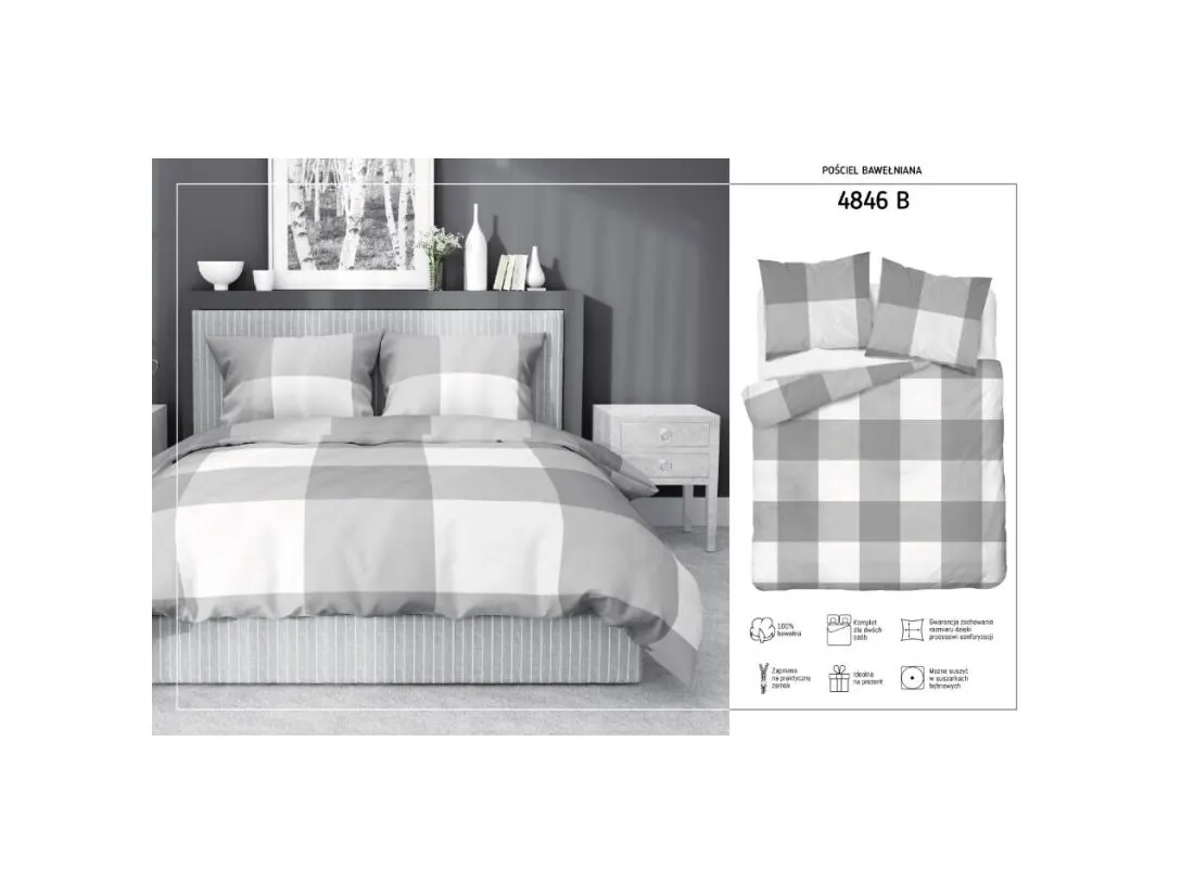Pościel z bawełny 220x200 +2/70x80 kratka szara wz.4846 b detexpol