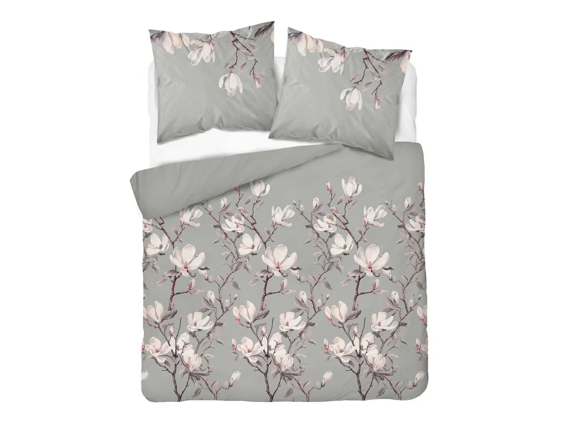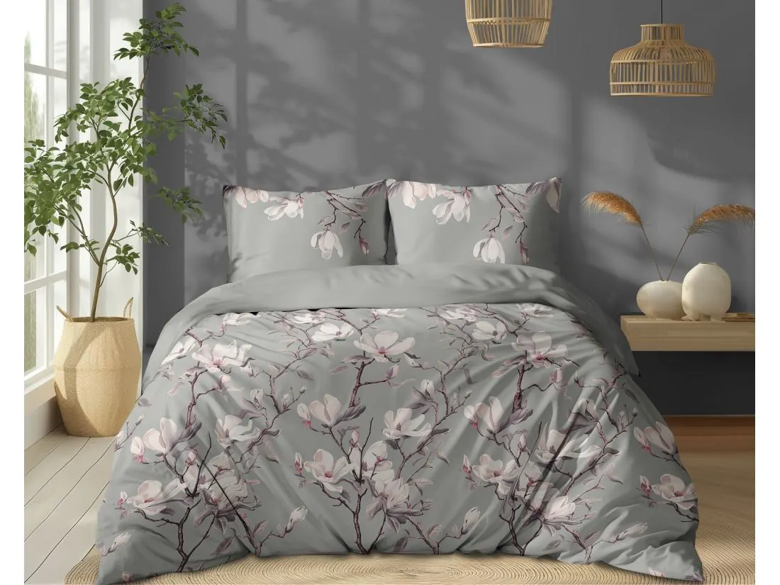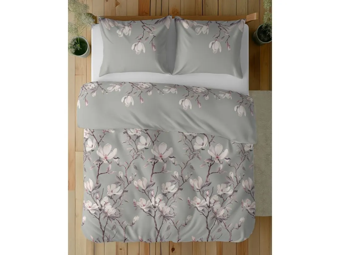 Pościel z bawełny 220x200 +2/70x80 magnolie na szarym tle wz. 5497 b