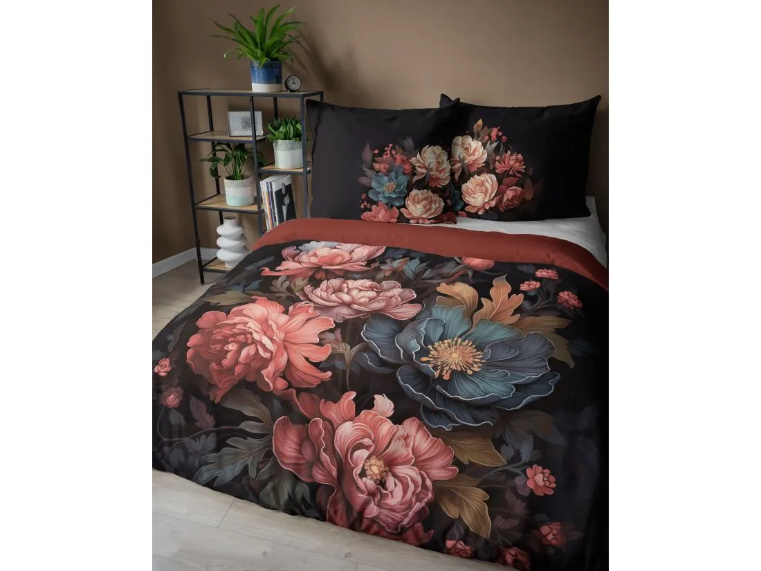 Pościel z bawełny 220x200 +2/70x80 morelowe piwonie holland collection holenderska 3D
