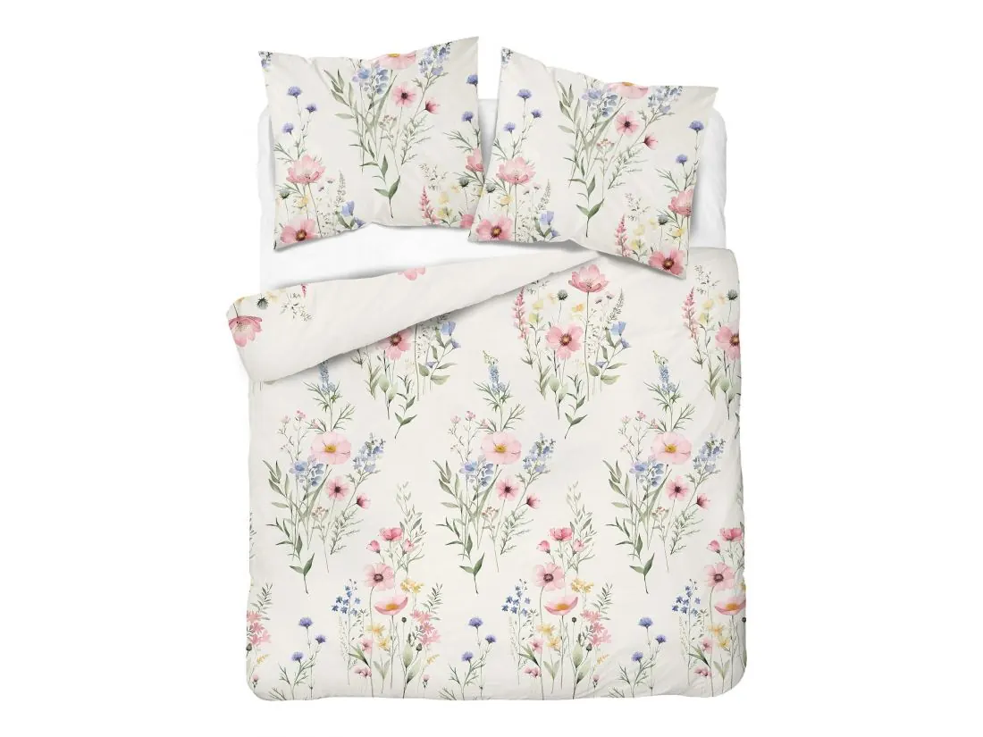 Pościel z bawełny 220x200 +2/70x80 pastelowa łąka na jasnym tle wz. 5499 a