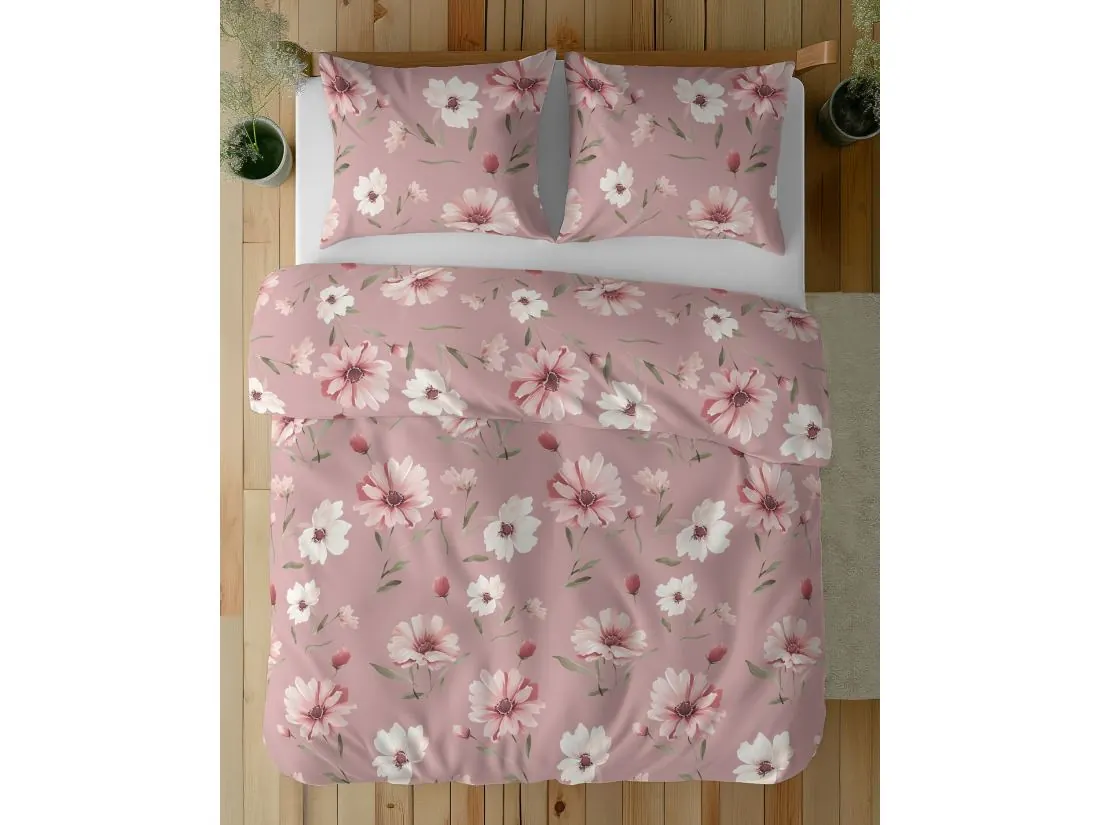 Pościel z bawełny 220x200 +2/70x80 słodki różowy kwiat wz. 5502 a
