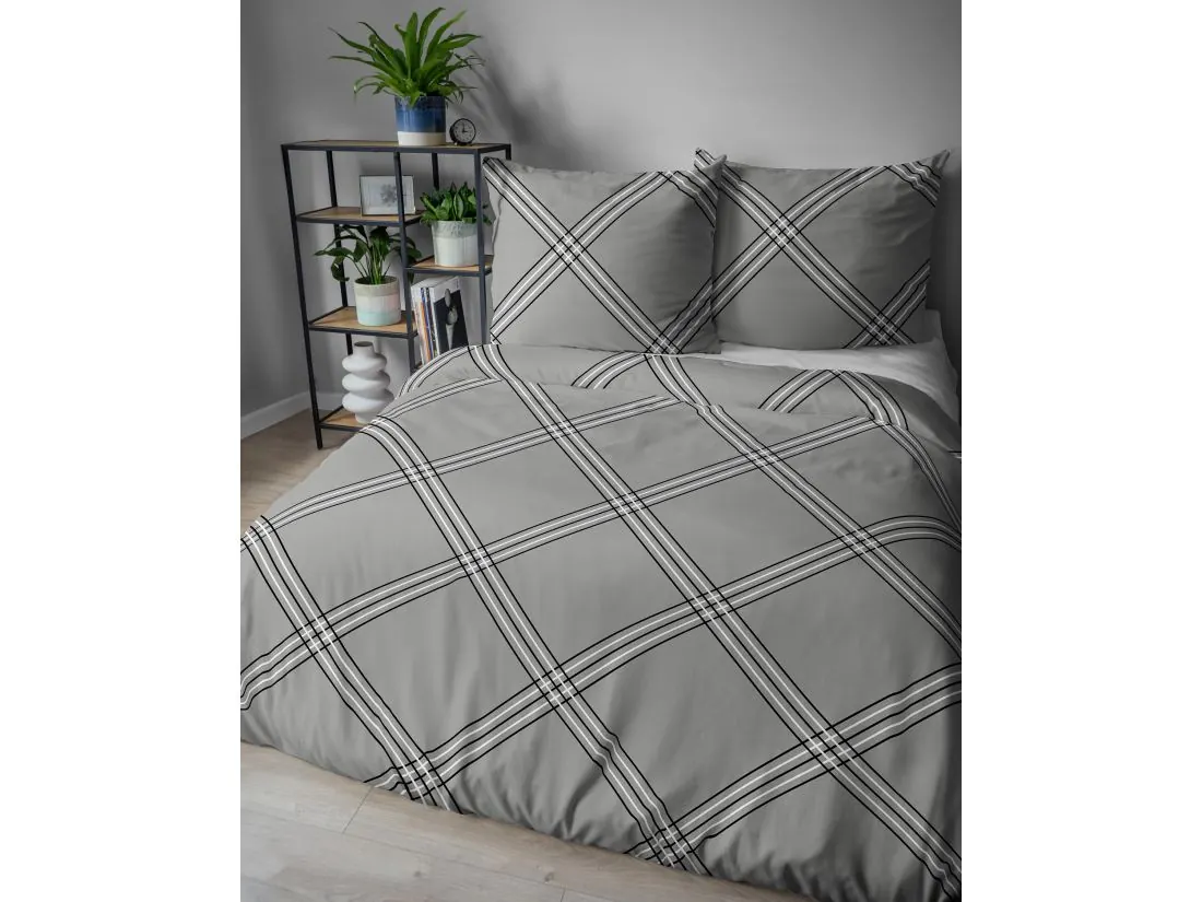 Pościel z bawełny 100% o gramaturze 125 g/m² to idealne rozwiązanie dla osób ceniących naturalne materiały i wysoki komfort snu. Lekka, miękka i przyjemna w dotyku tkanina zapewnia wyjątkową wygodę oraz odpowiednią cyrkulację powietrza, co sprawia, że jest idealna do użytku przez cały rok. Nowoczesny, geometryczny wzór w odcieniach szarości doda elegancji i subtelnej dynamiki każdej sypialni, doskonale wpisując się w różnorodne style wnętrz.