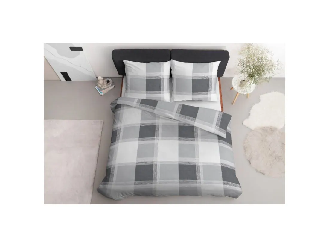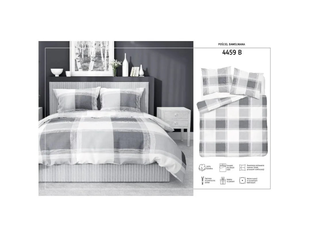 Pościel z bawełny 220x200 +2/70x80 szara krateczka wz.4459 b