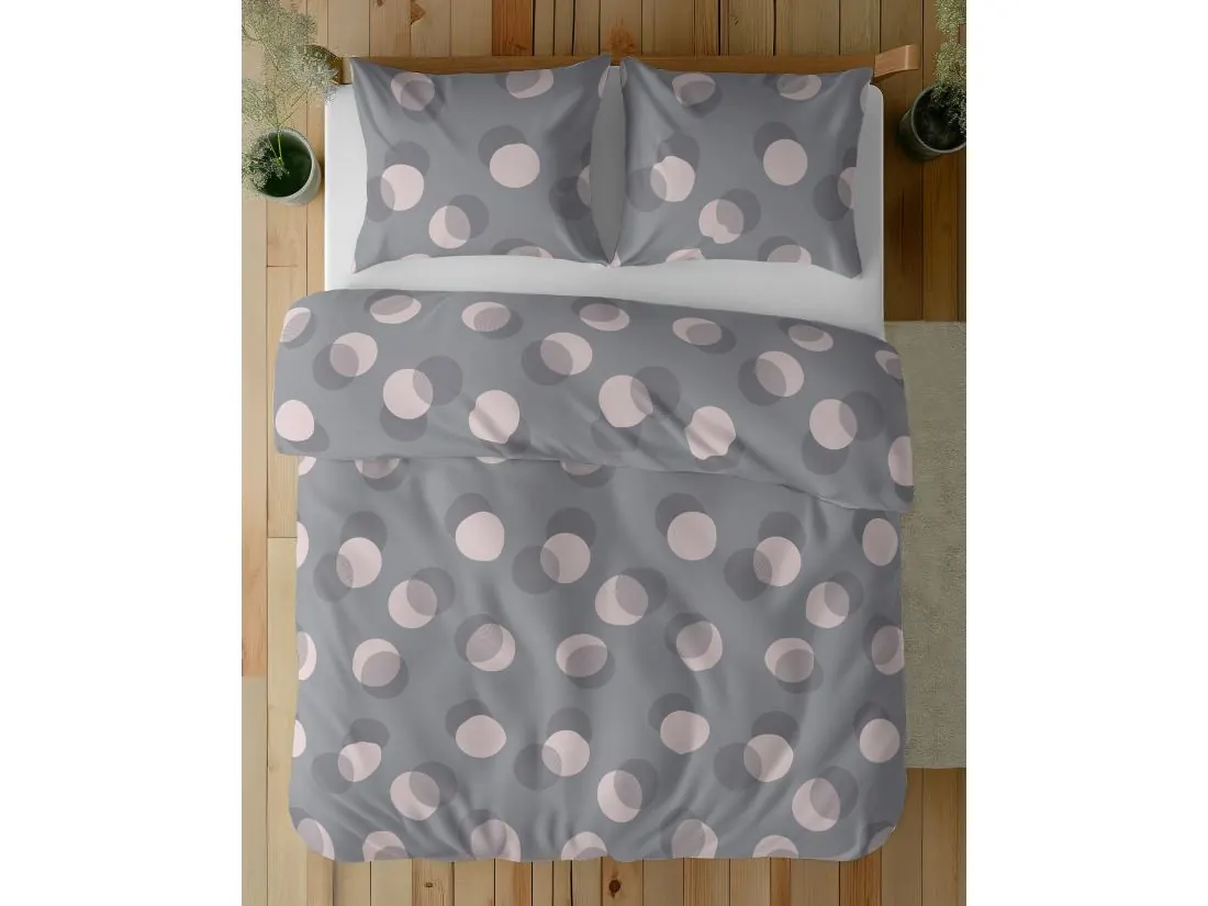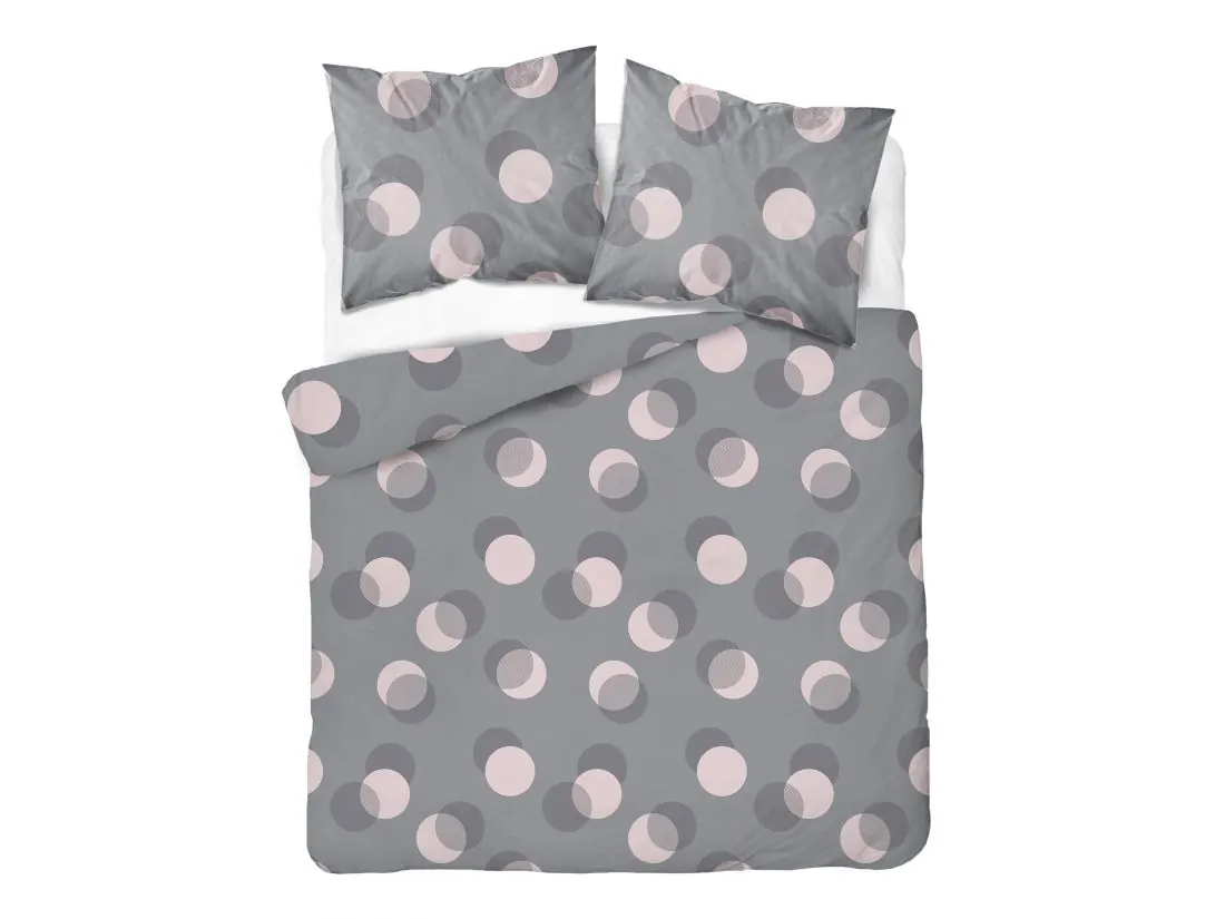 Pościel z bawełny 220x200 +2/70x80 szaro różowe kółka wz. 5495 b
